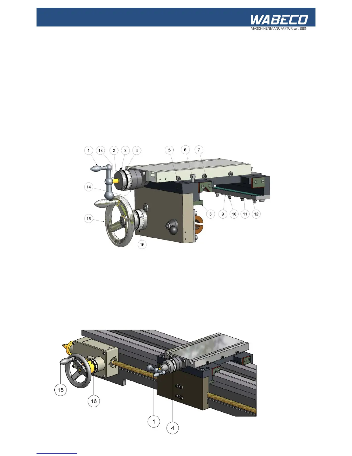 ■ One turn of the ball crank (1) on the transverse skid corresponds to 2 mm of travel, but a change