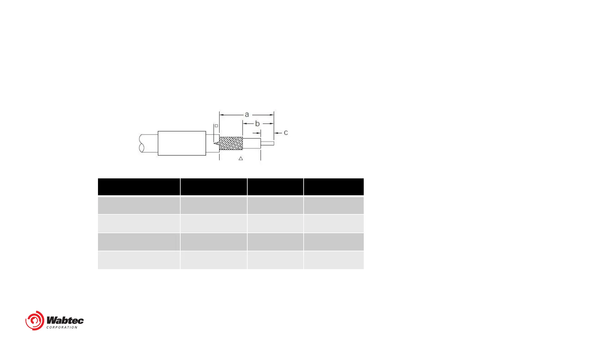 1. Strip cable jacket, braid, and dielectric to dimensions in the table below for the