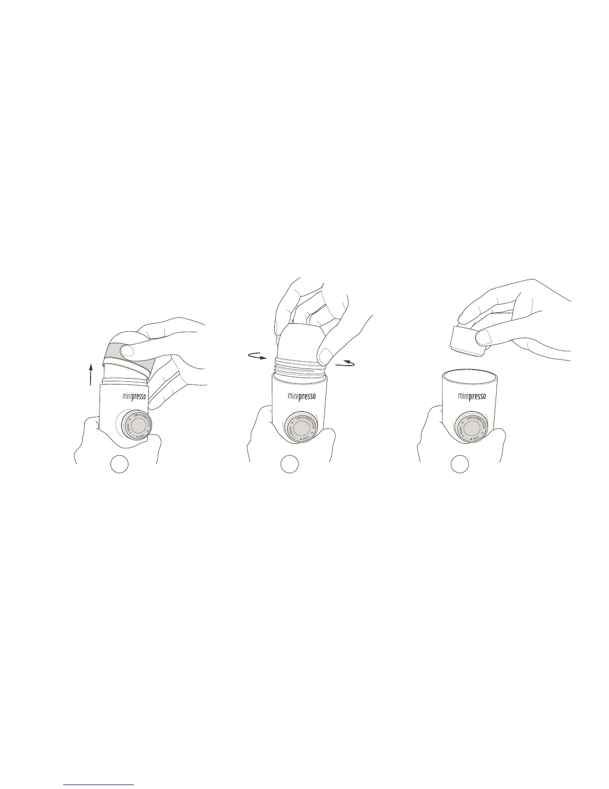 Unclips the cup. Unscrew the outlet head. Remove the lter basket.