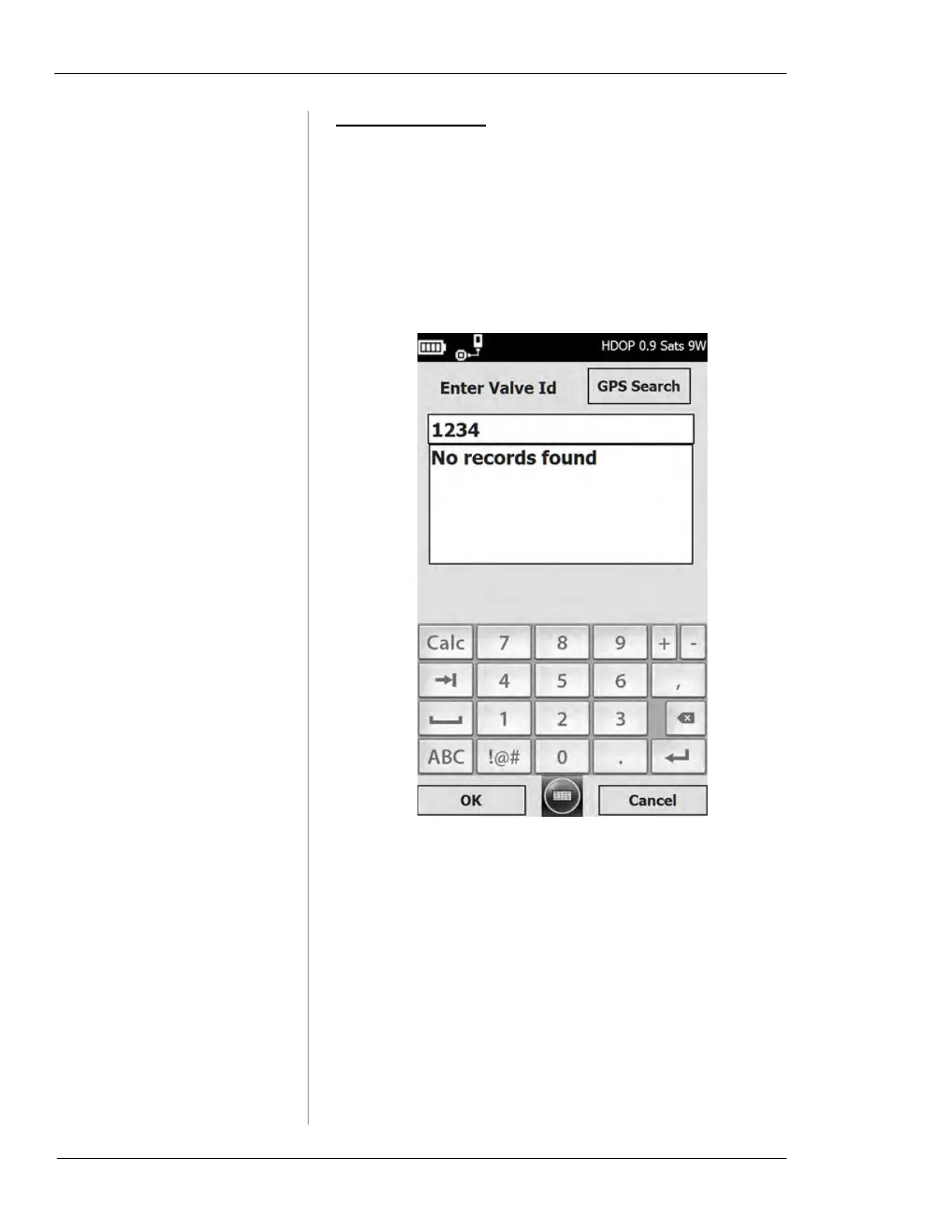Tap the GPS Search button on the Enter Valve ID screen.