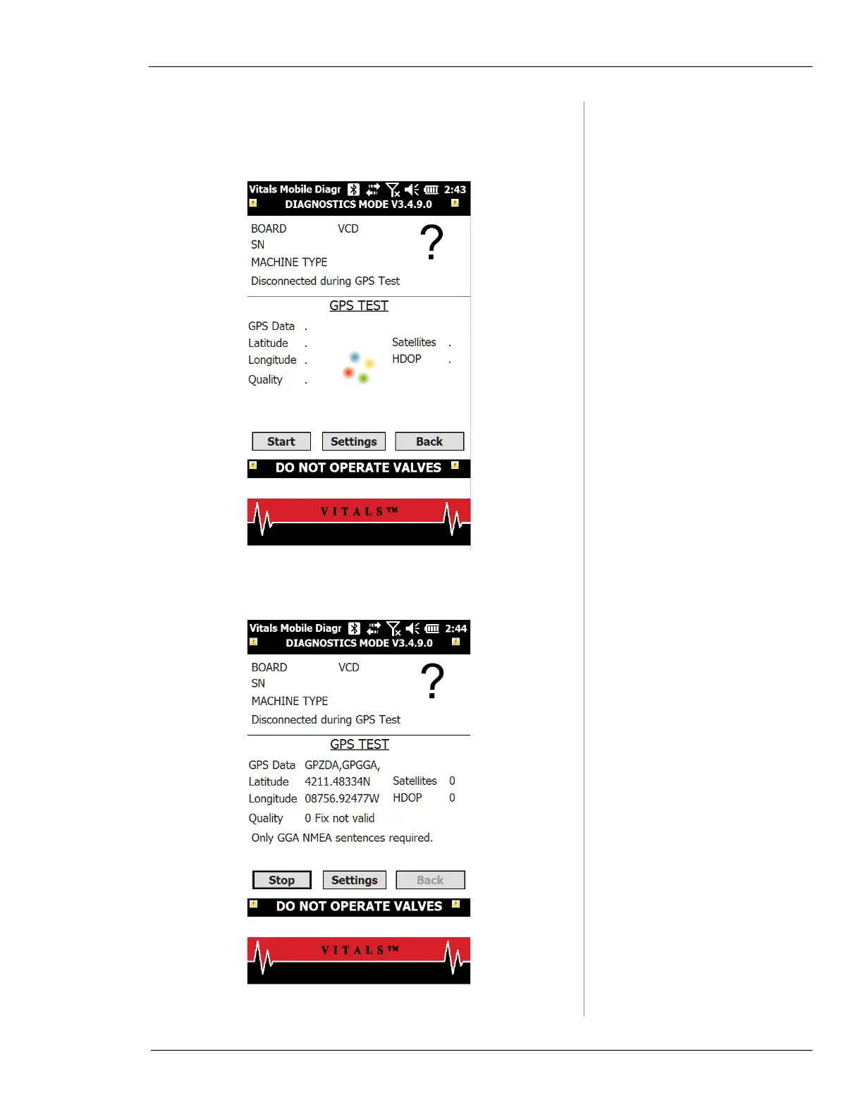 Chapter 6, Using Vitals Mobile-HC (HC-100 Controller): Vitals Mobile Diagnostics
