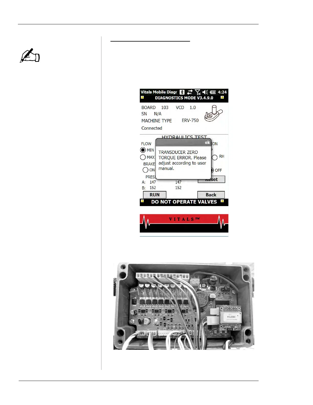 message when you start the Hydraulics Test. To correct the
