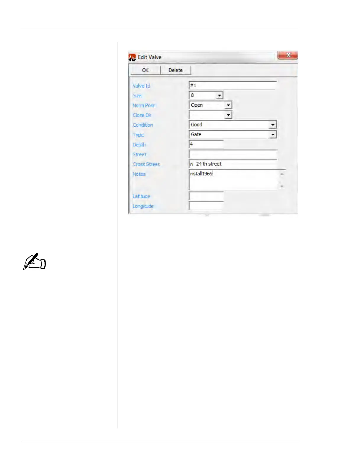 Delete button to delete the valve record. You