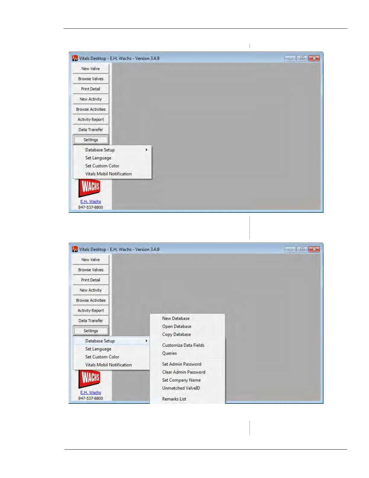 Database Setup has commands for configuring the Vitals