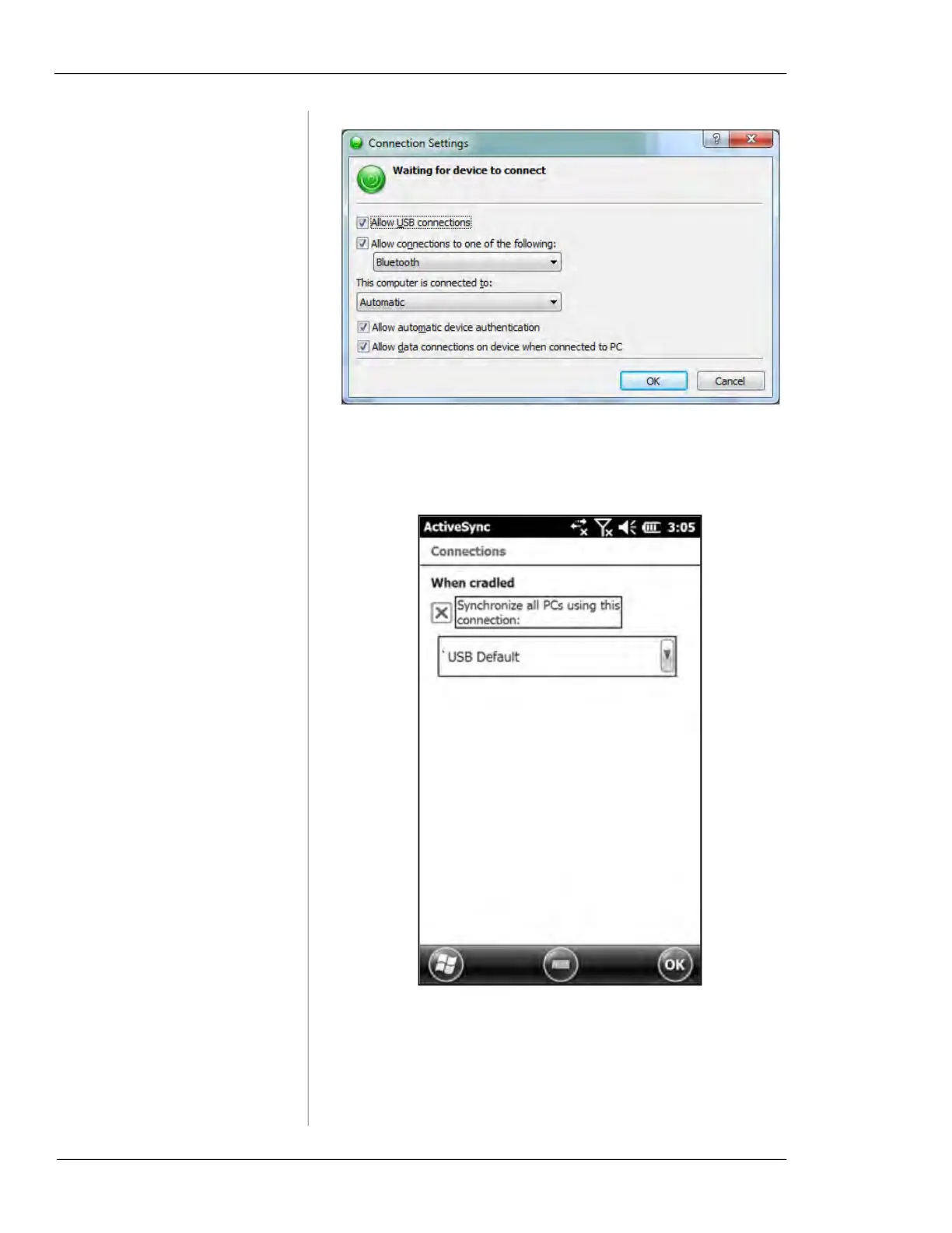• Start Screen > Tap ActiveSync icon > Menu > Con-