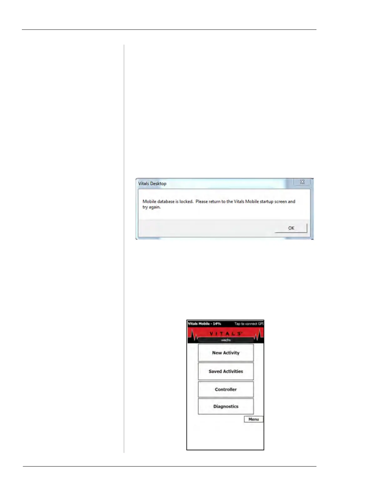 • This error message pops up when Vitals Mobile is