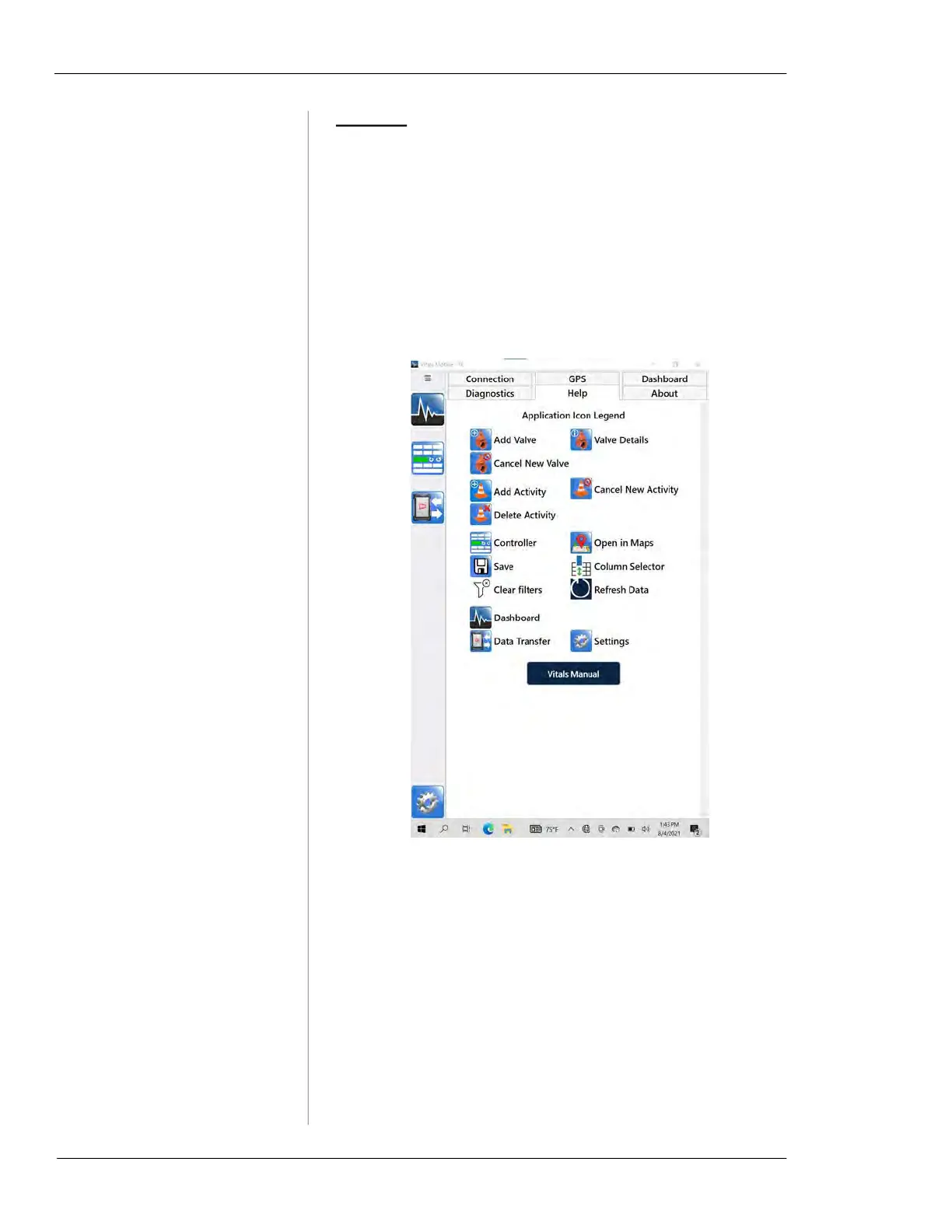 Tap Vitals Manual to access this manual from the