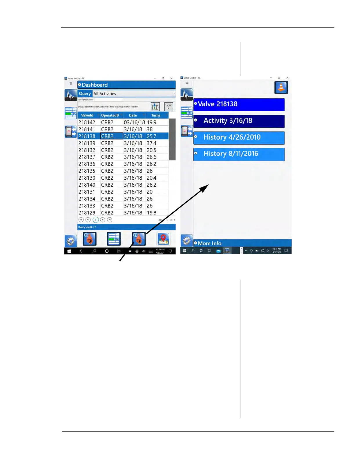 Chapter 5, Using Vitals Mobile-TC (TC-100 Controller): Displaying and Searching Valve Information