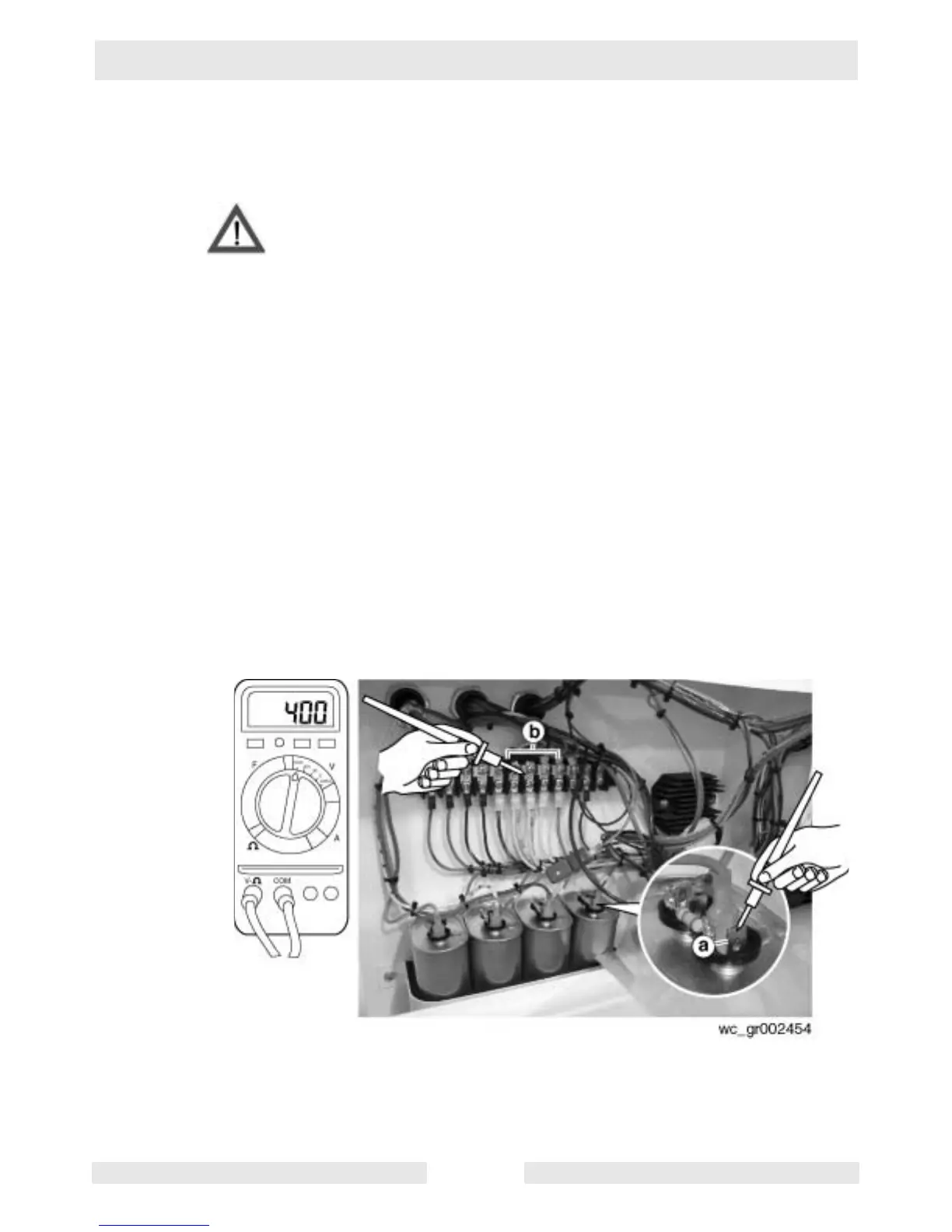 7.20.3 Using the AC voltage setting on the multimeter, test for 400V±10%