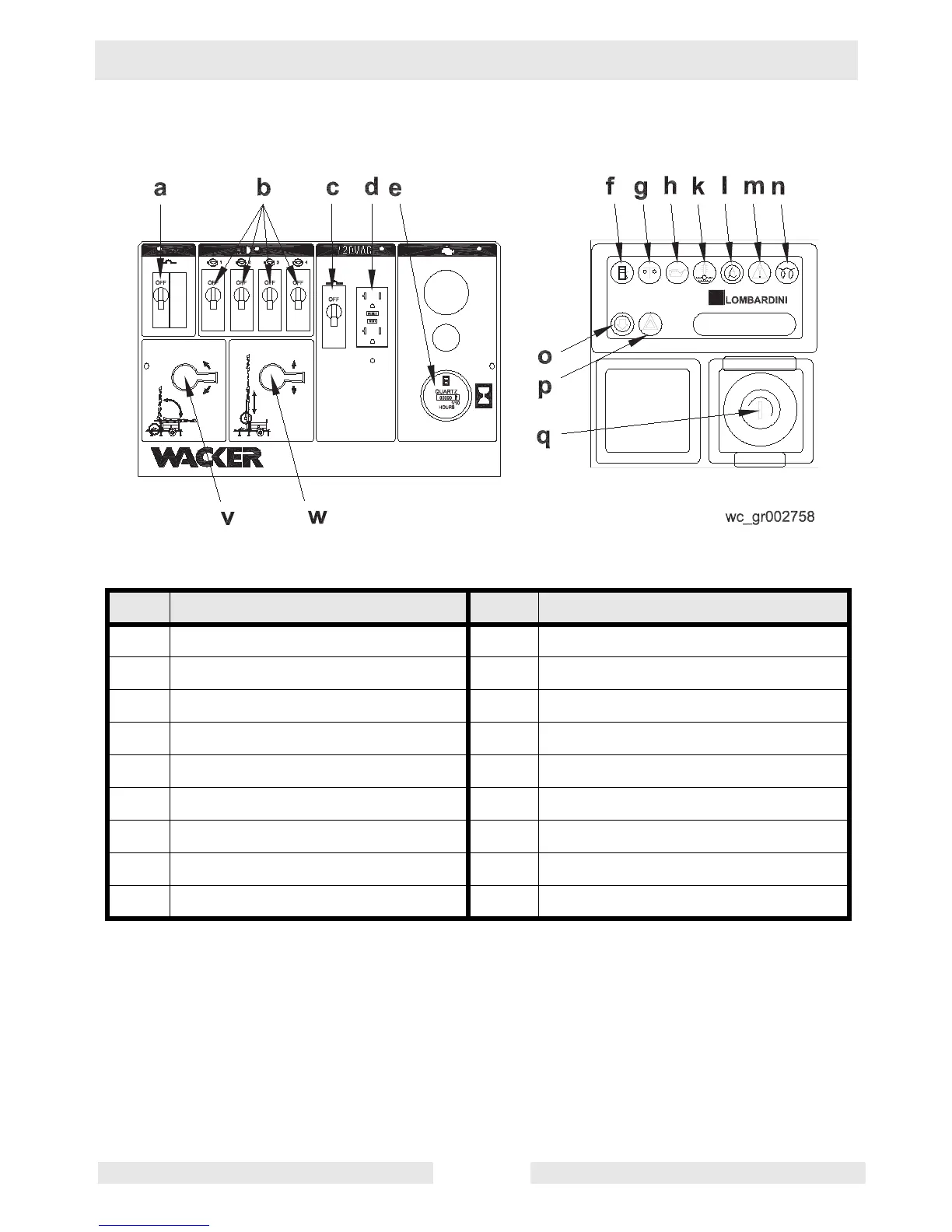 e Hour meter p Auxiliary light (not used)