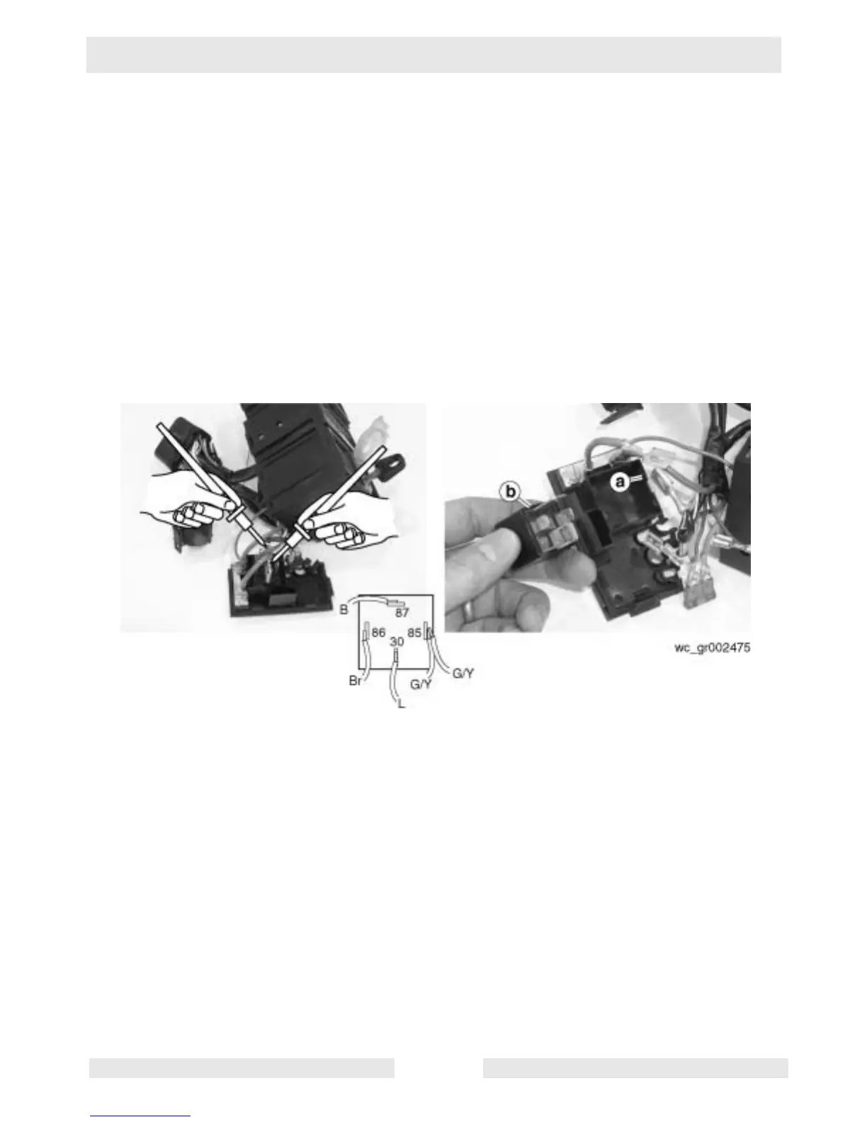 5.10.2 Bend back the tabs (a) securing the glow plug relay (b) and pull the
