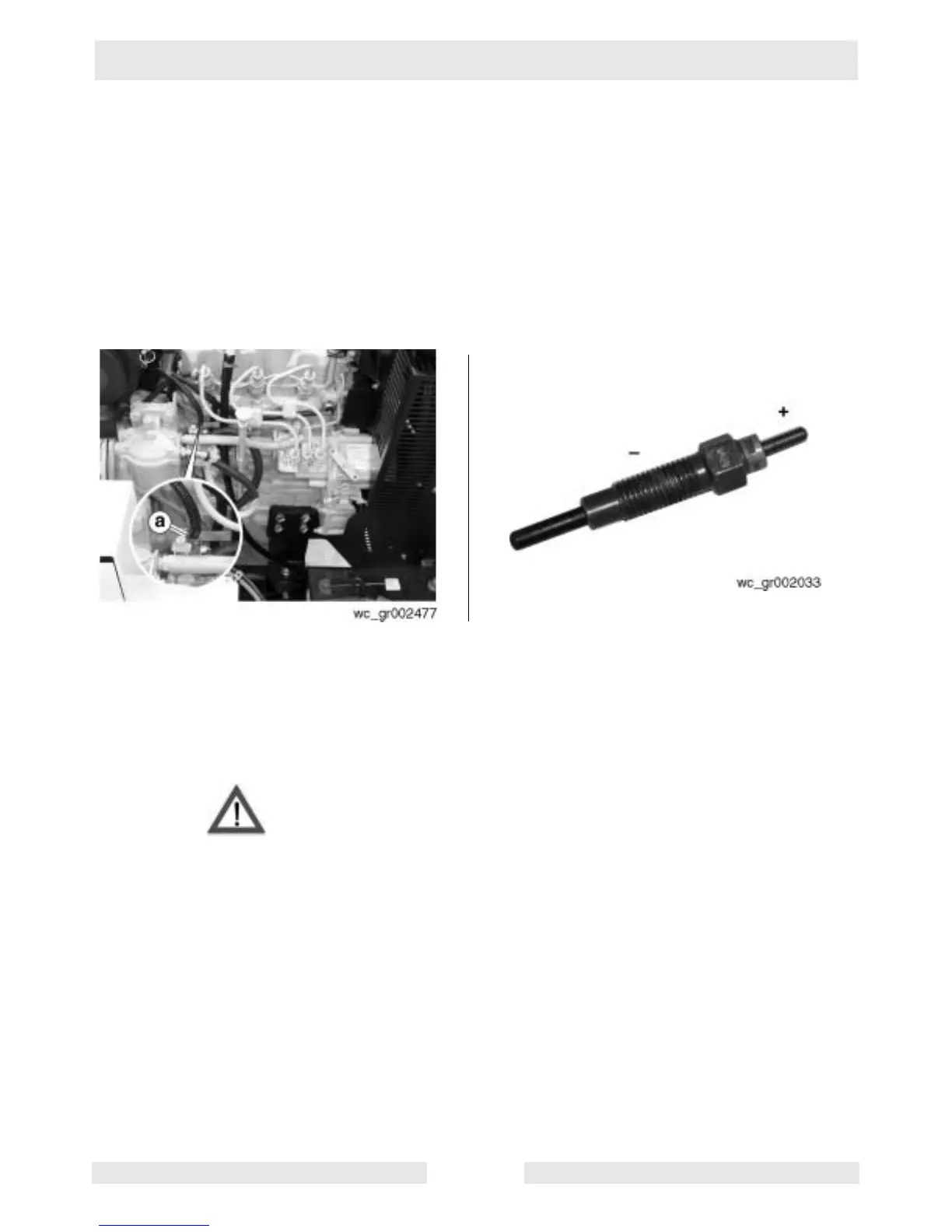 Burn hazard. Glow plugs can reach temperatures up to 1200°F