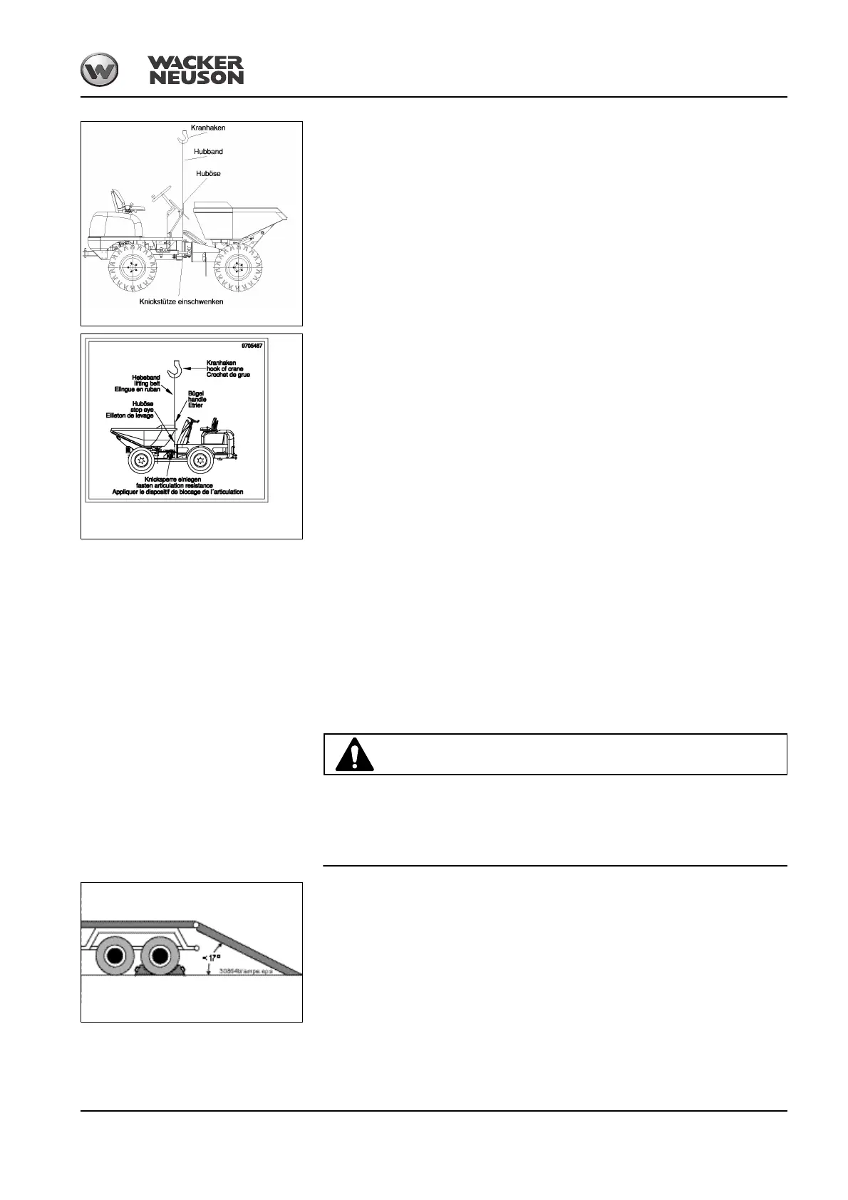 not exceed 17° (30 %). Use access ramps with an antiskid surface only.