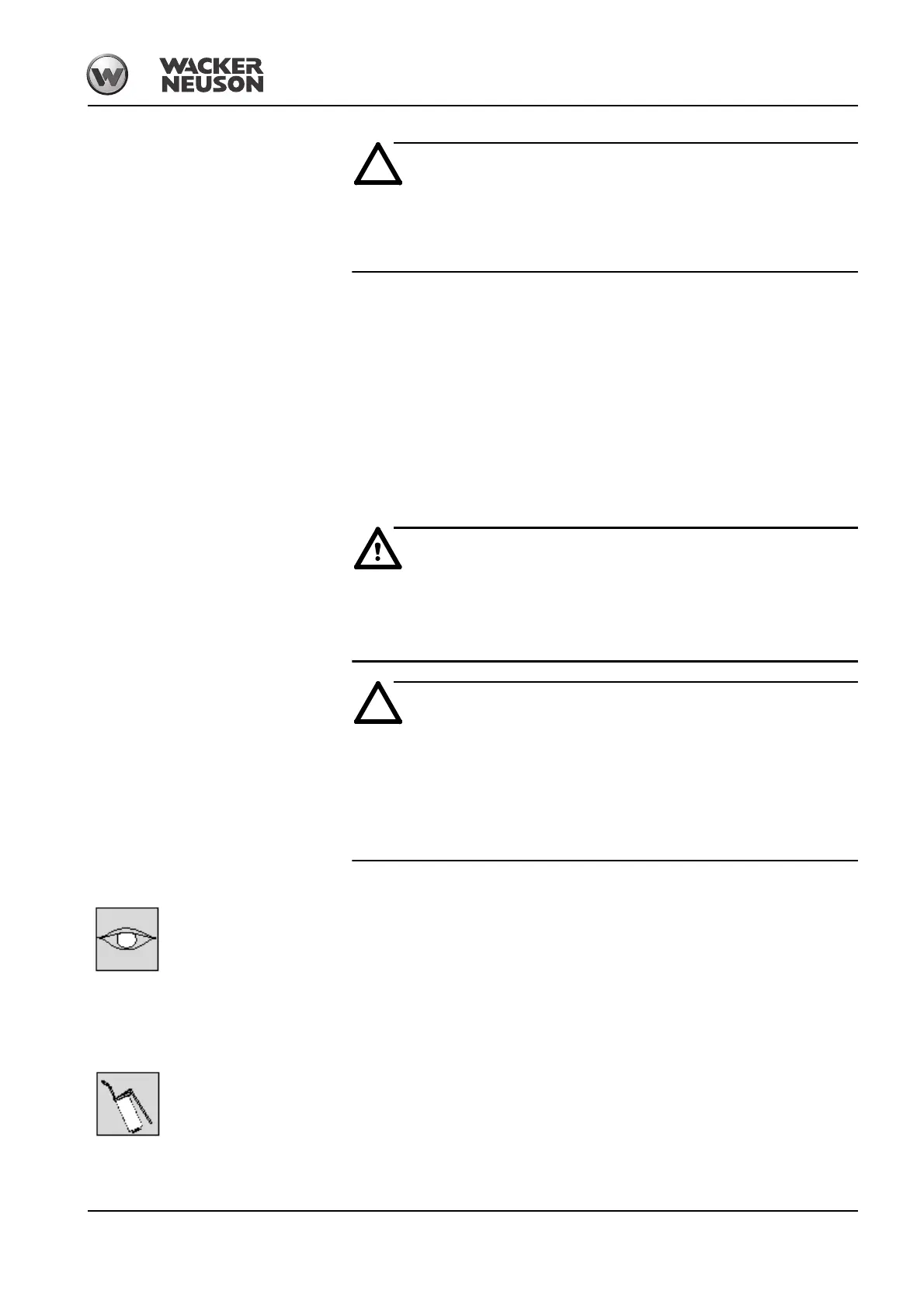 Retighten loose connections immediately. Contact a Wacker Neuson service center if nec-