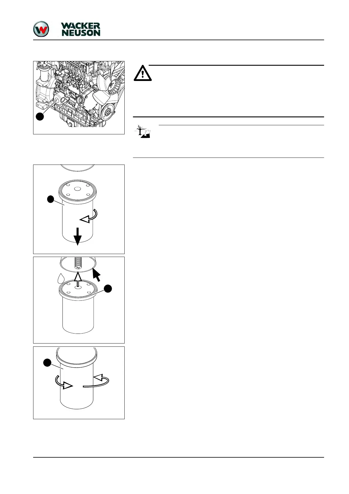• Tighten the new filter cartridge by hand until the gasket makes contact