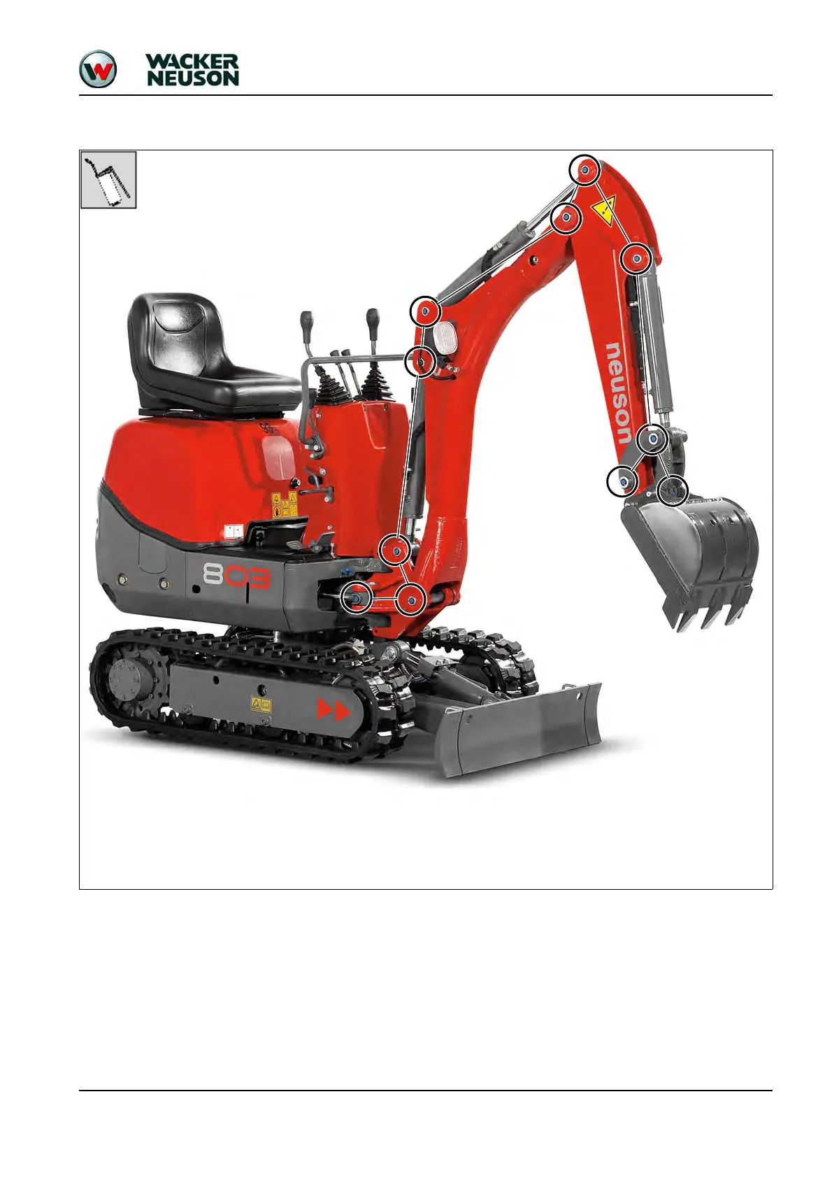 Wacker Neuson 803 - Lubrication Points on Boom (up to Serial Number AI00966)