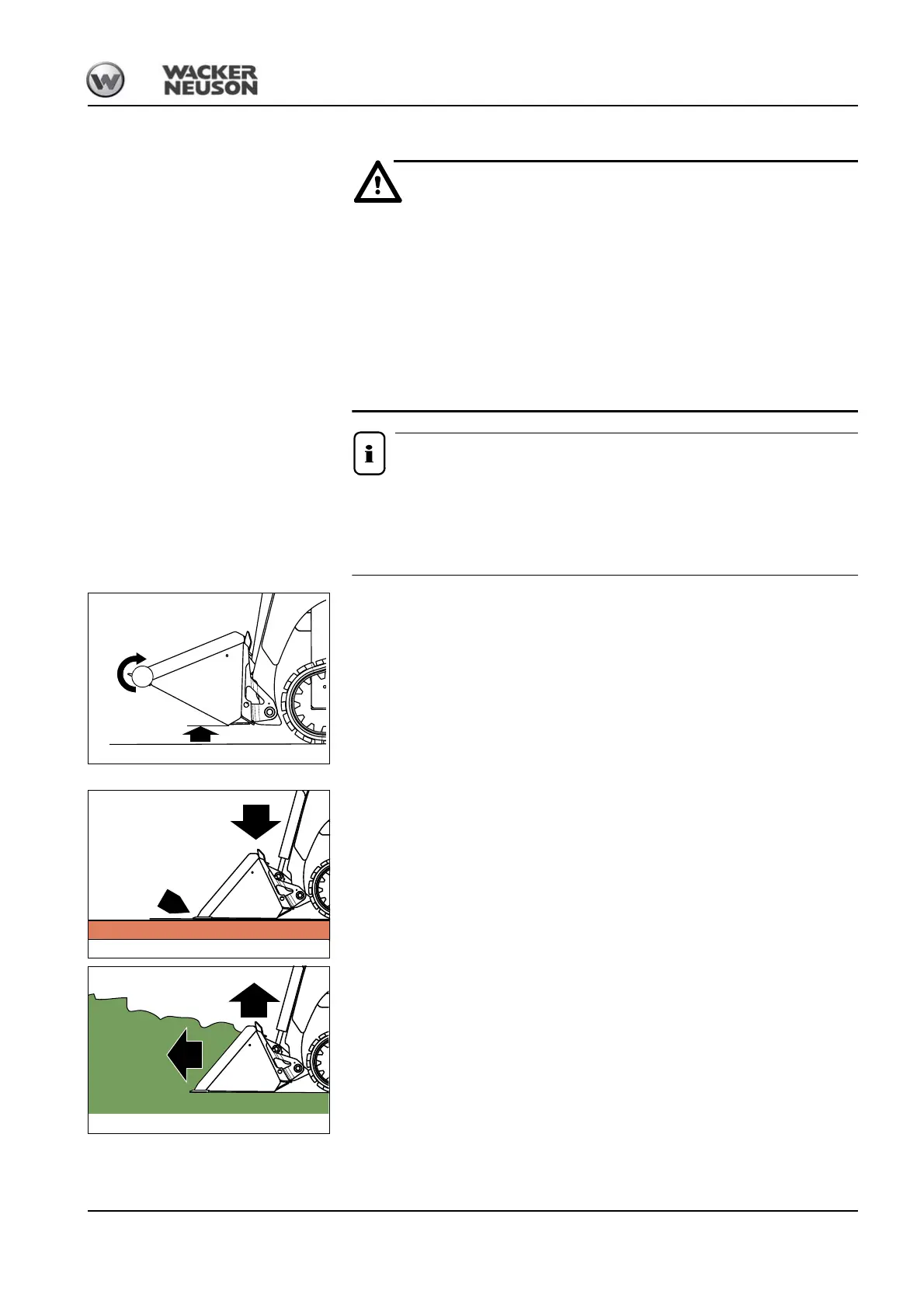 slopes. The lower the bucket and the center of gravity, the less danger there is