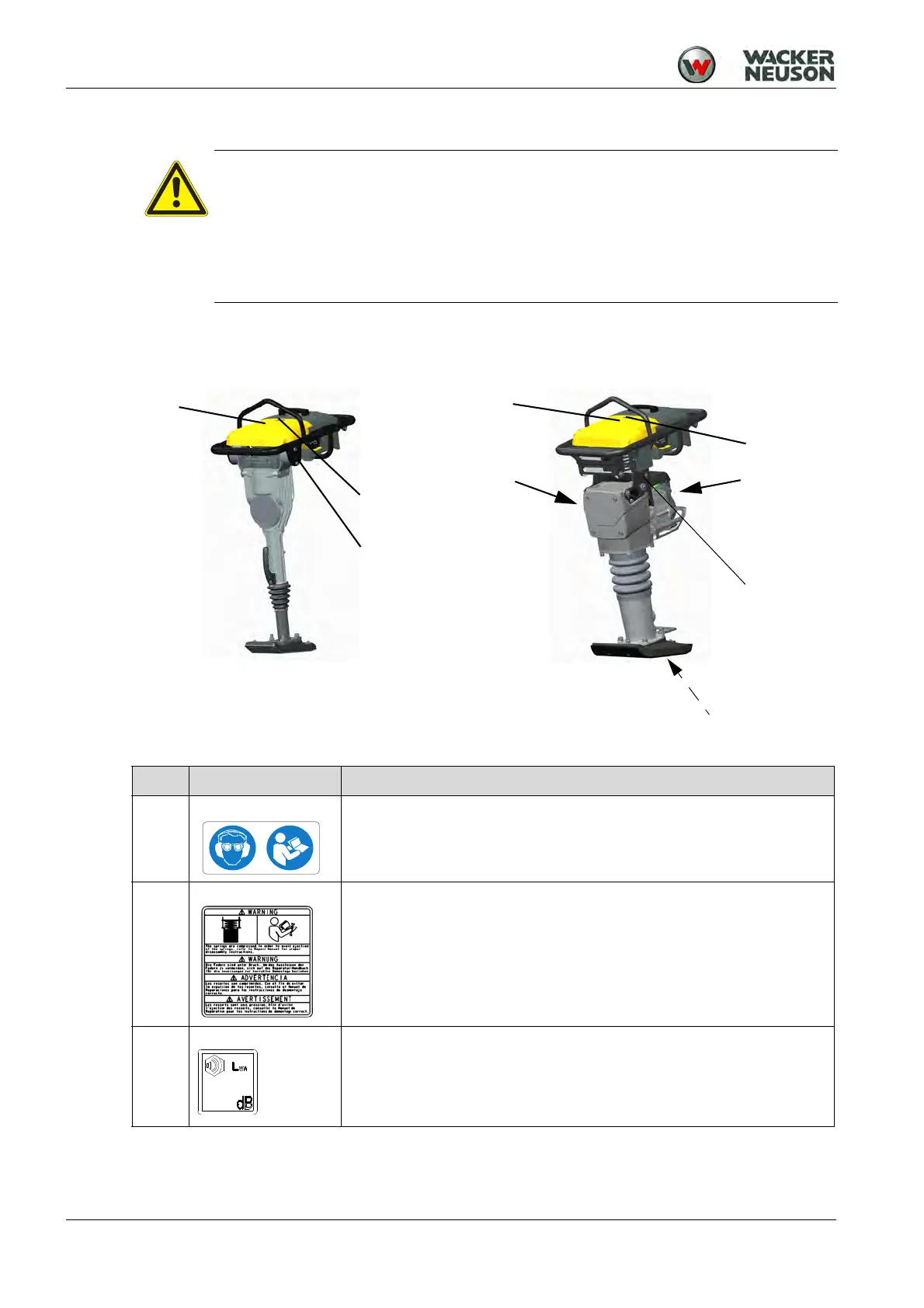 The following labels are located on the machine: