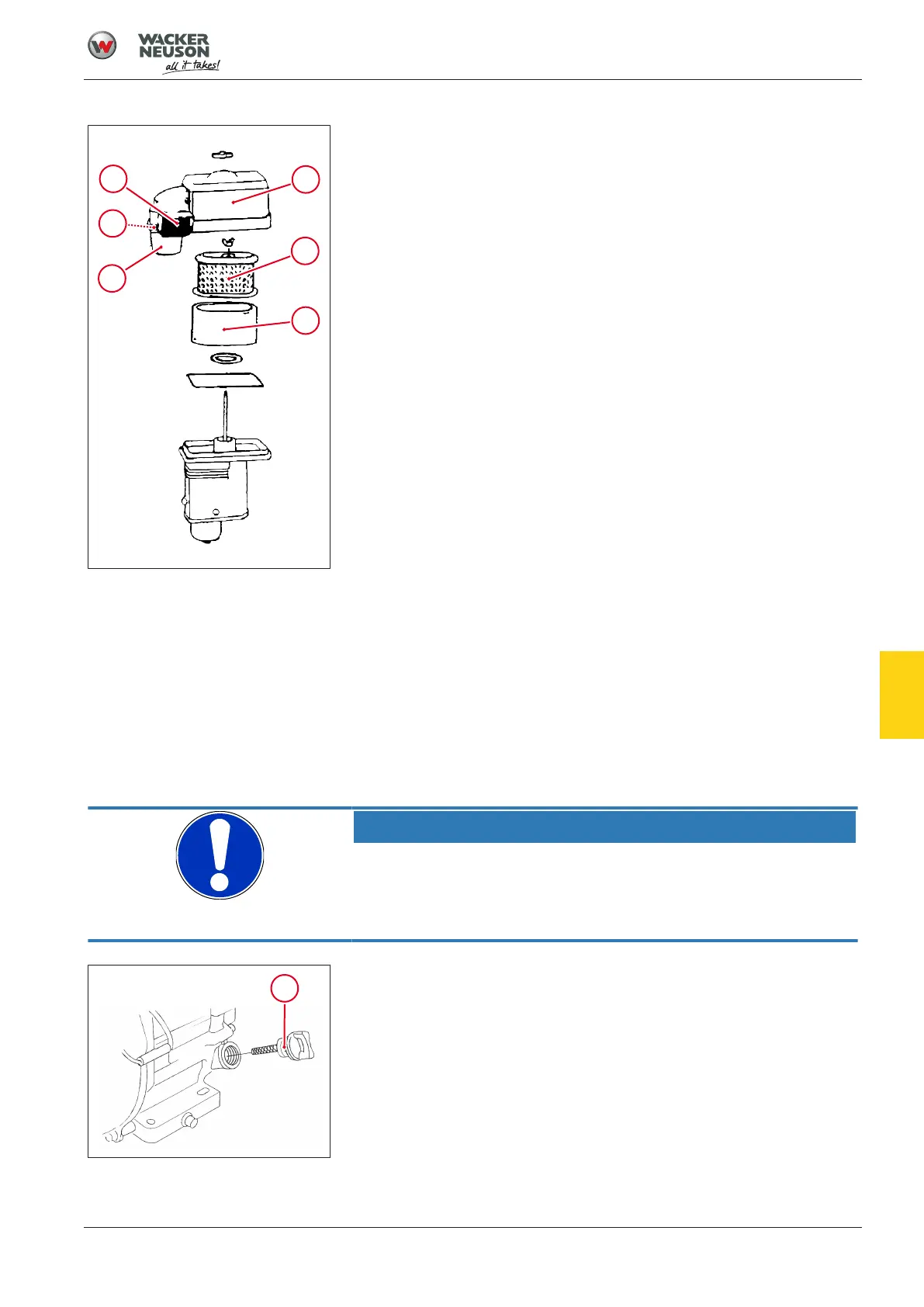 4. Check both air filter inserts for cracks and holes, replace if dam-