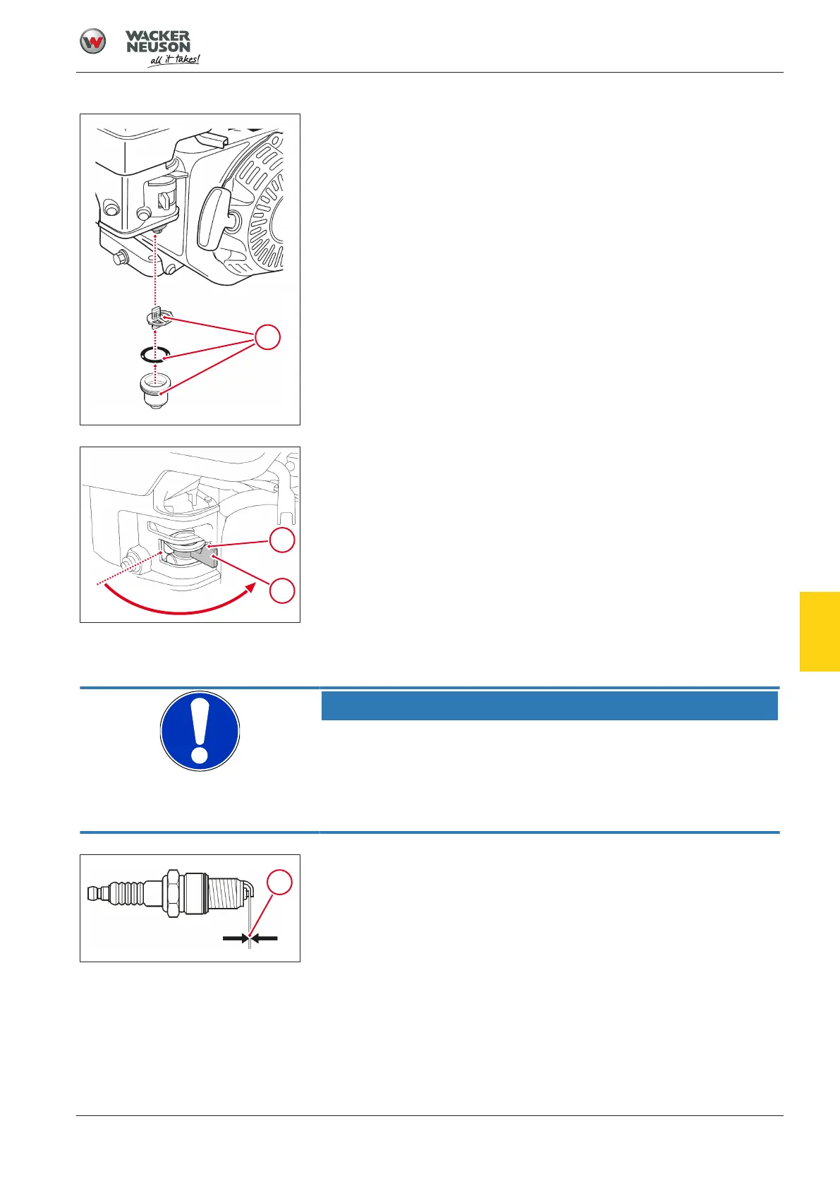 6. Tighten the spark plug again, tightening torque 18 Nm.