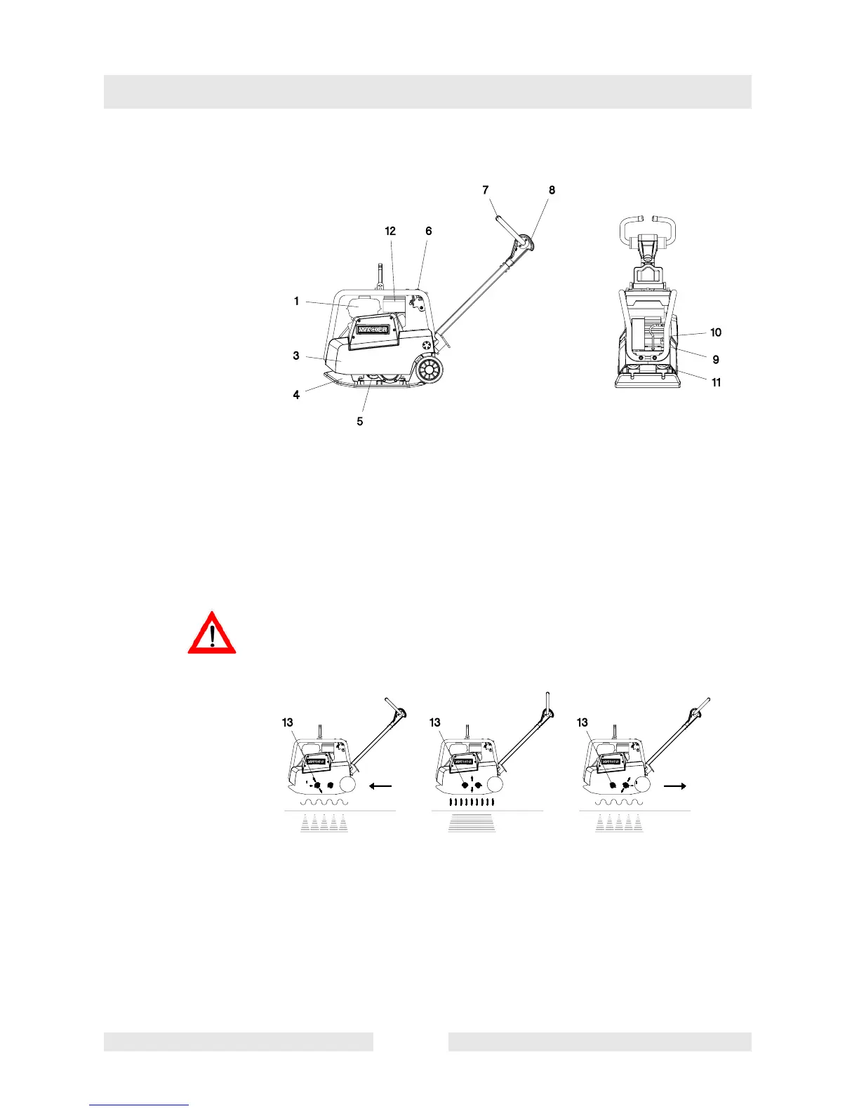The drive motor (1) attached to the upper mass (3) powers the exciter