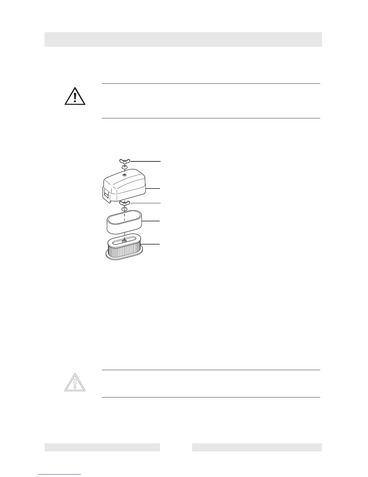 f Unscrew the inner wing nut (3) and remove air filter cartridges.