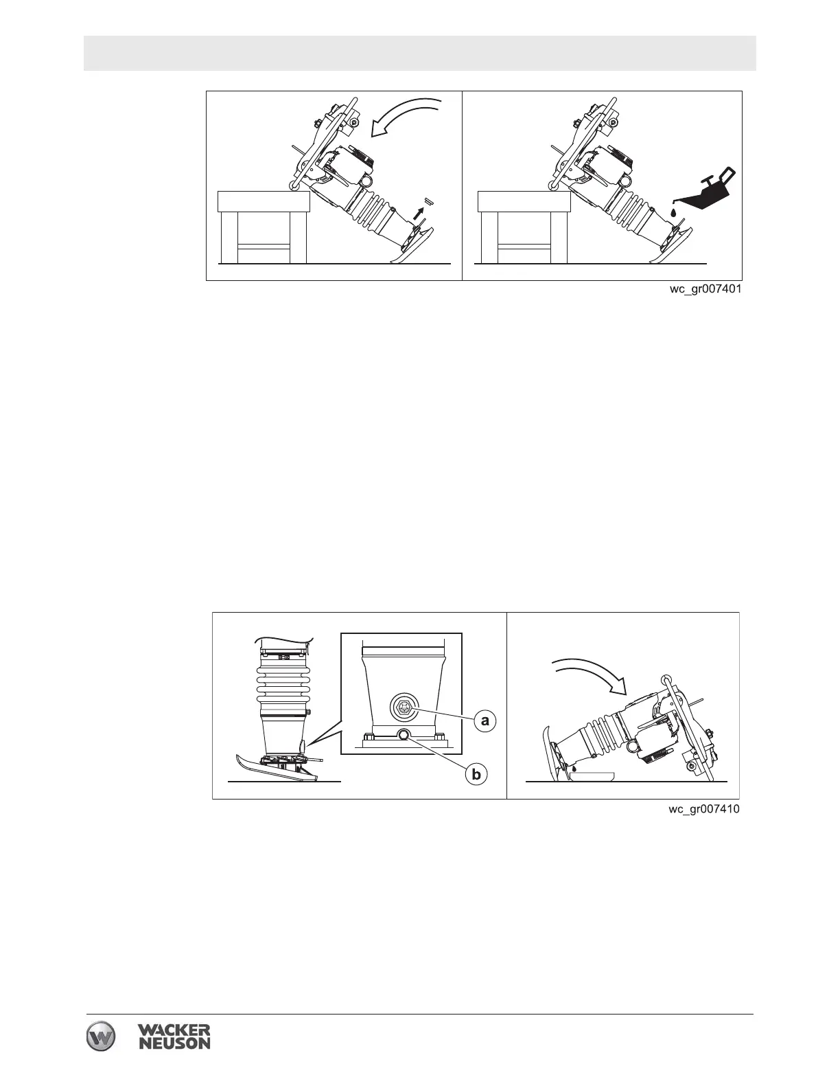5.8.8 Tilt the rammer backward until it is resting on the handle and drain the