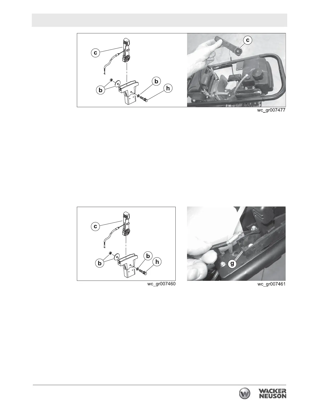 4.3.1 Connect the throttle lever (c) to the machine with bolt (h) and