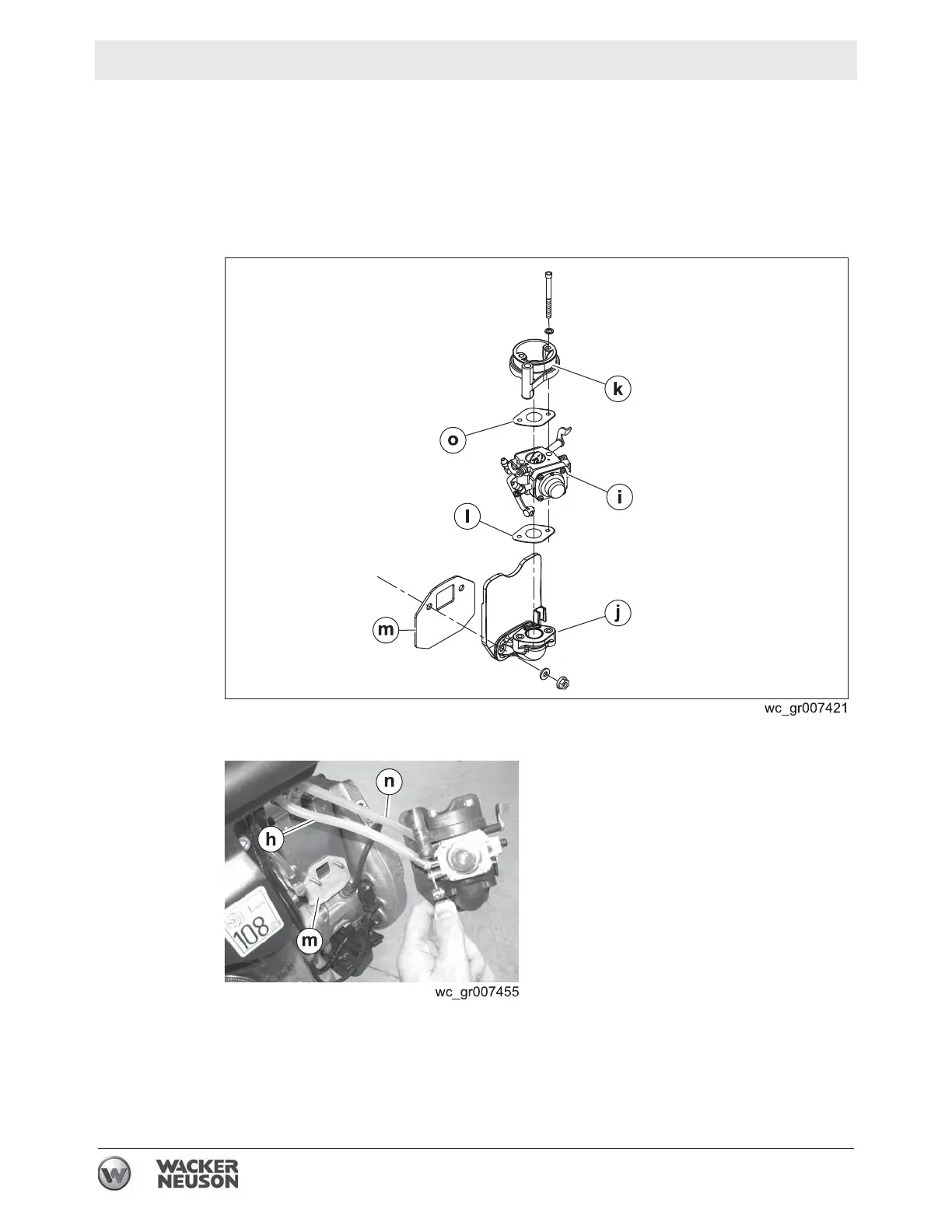 4.19.2 Connect the oil hose (h), and the fuel hose (n), to the carburetor.