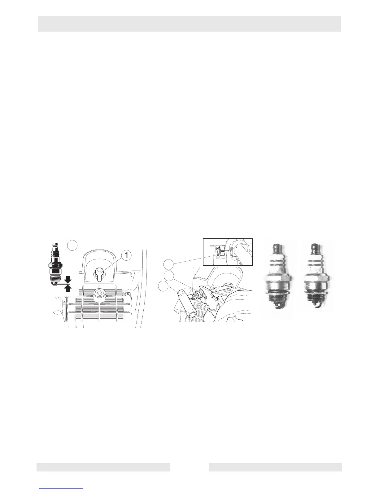 4.1.3 Connect spark plug (2) with plug socket and hold to ground (3). Pull out