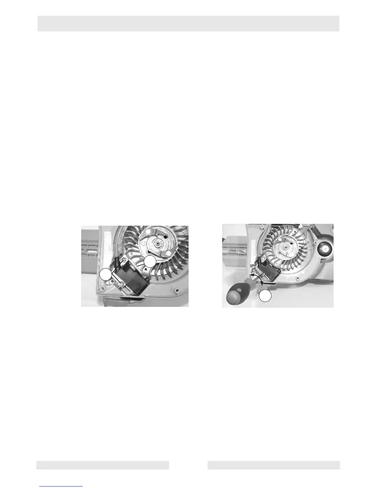 4.4.2 Remove the two screws (1) of the ignition armature. Clip off ignition