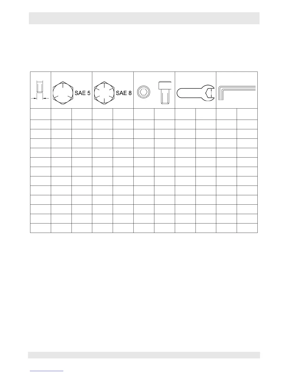 Size Nm ft.lb. Nm ft.lb. Nm ft.lb. Metric Inch Metric Inch