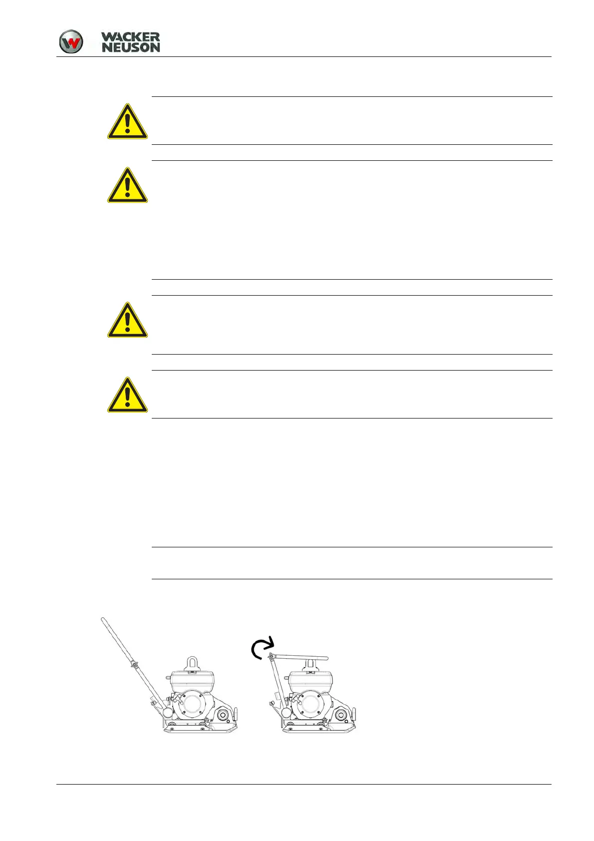 To transport the vibratory plate, only use suitable lifting gear with a minimum load-bearing capacity
