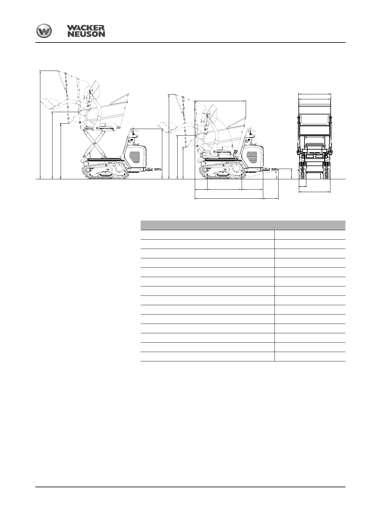 Fig. 99: Vehicle dimensions (model DT10 with high tip skip)
