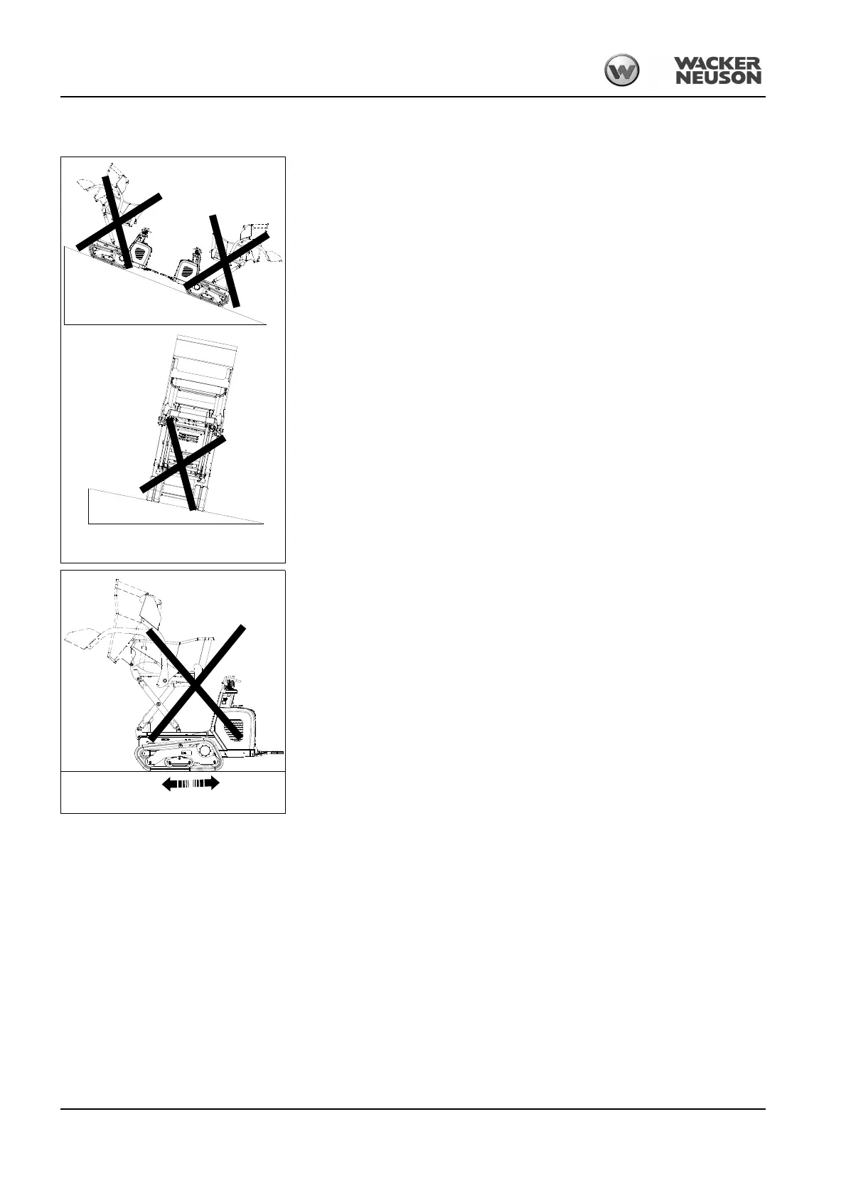 ☞Do not raise or dump out the skip on slopes, otherwise the machine can tip forwards.