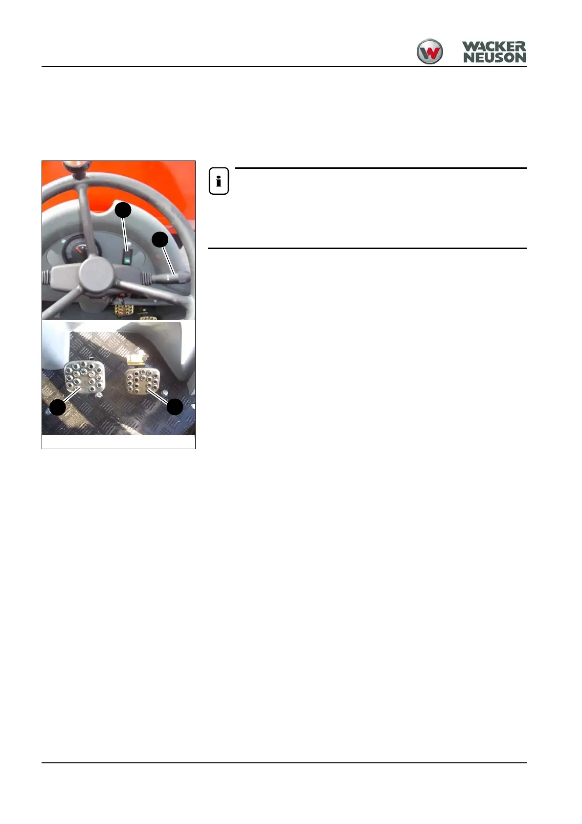 ☞ To brake the machine: take your foot off the accelerator pedal and if necessary, press
