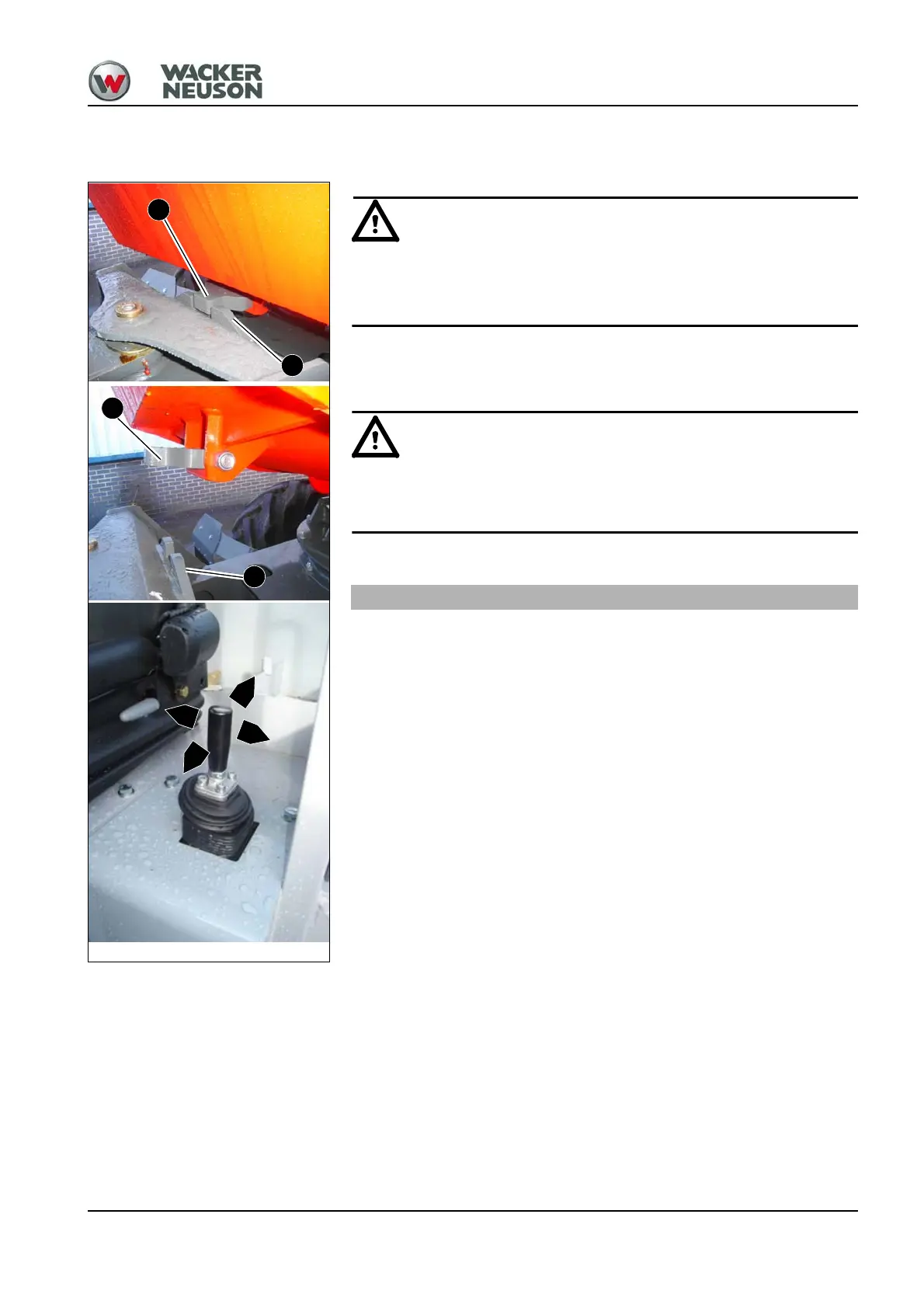 Crushing hazard. Lowering the dump bucket rapidly may cause the machine to