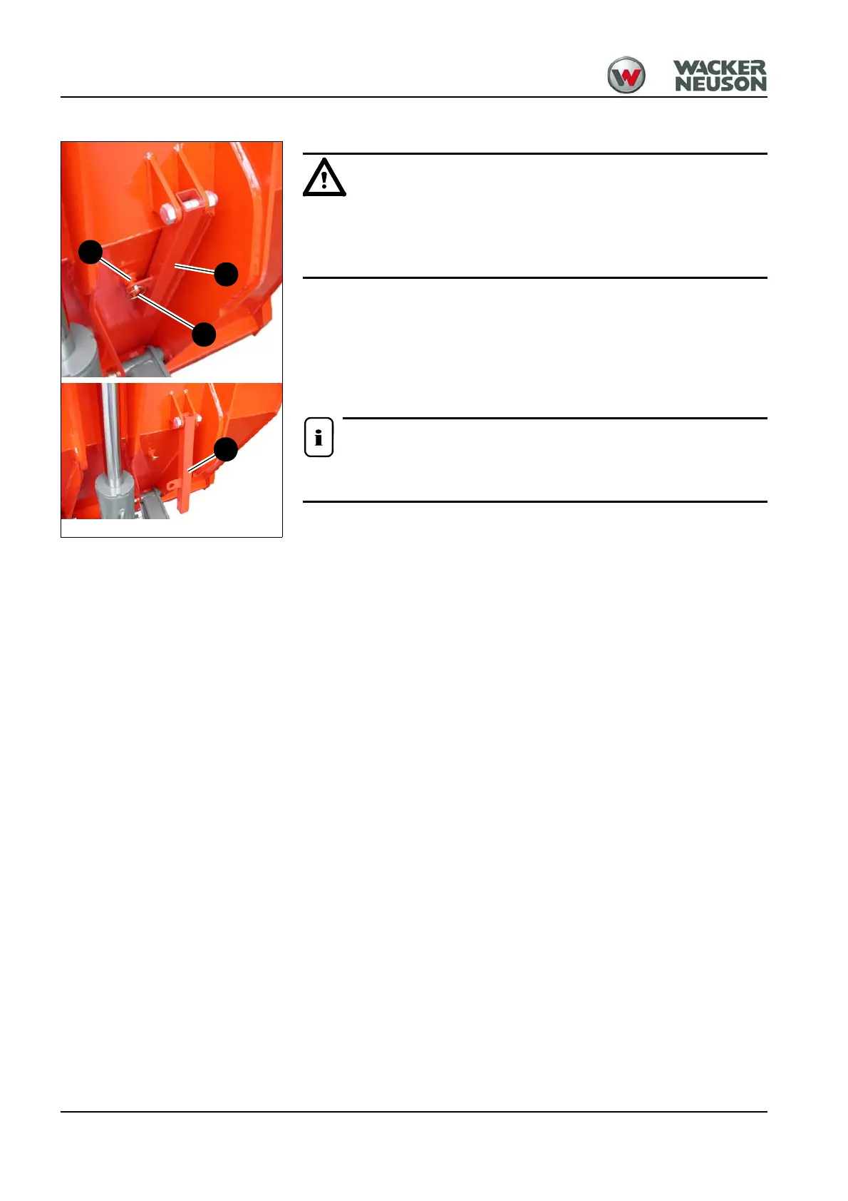 ☞ Lower the dump bucket slowly until the strut is supported on the dump bucket swivel