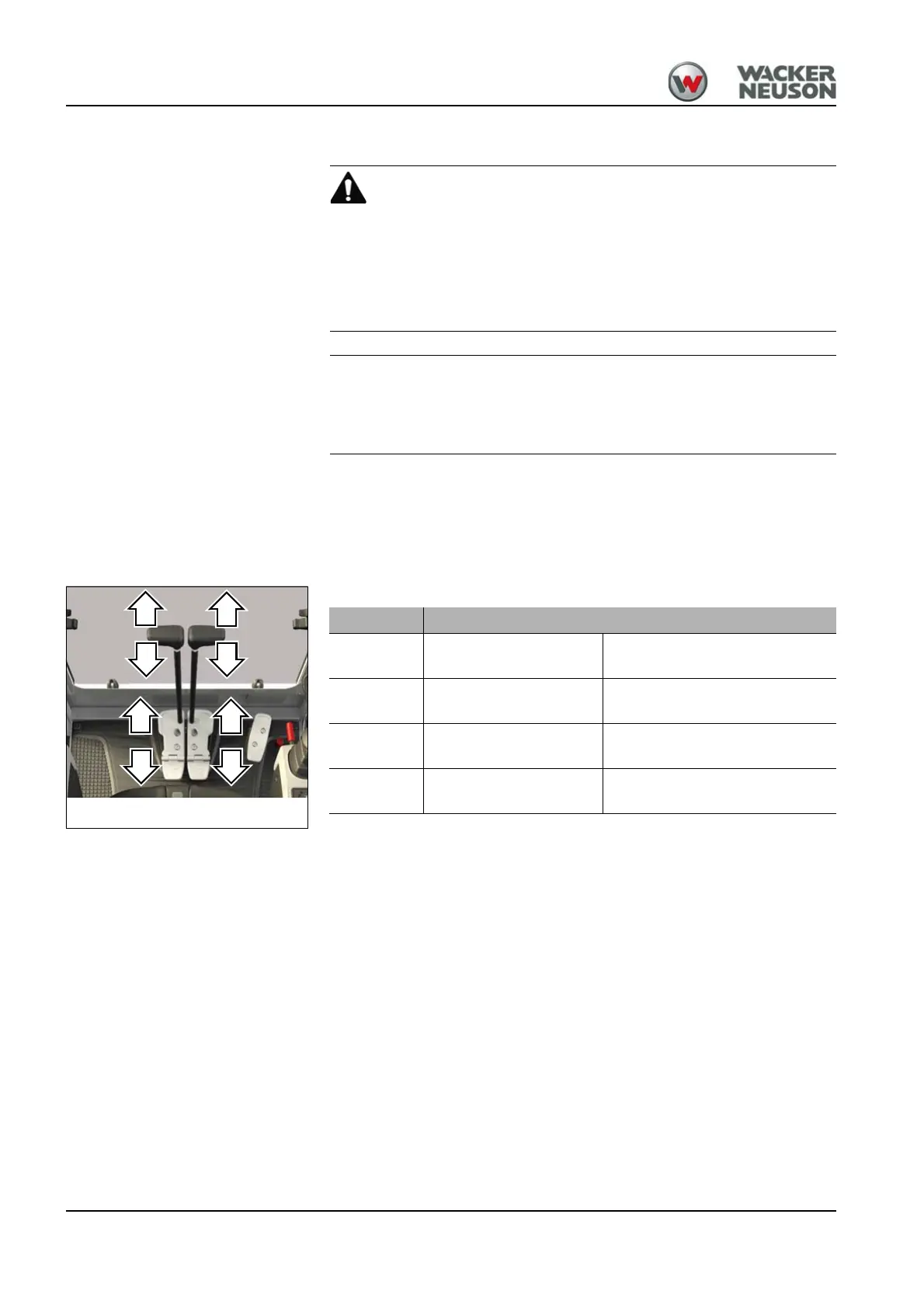 ► Slowly and carefully actuate the pedals and control levers.