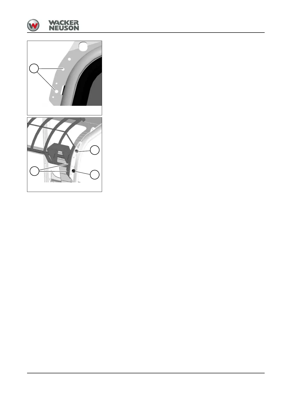 6. Tighten screws E (M12/8.8) and lock nuts on the left and right to 87 Nm