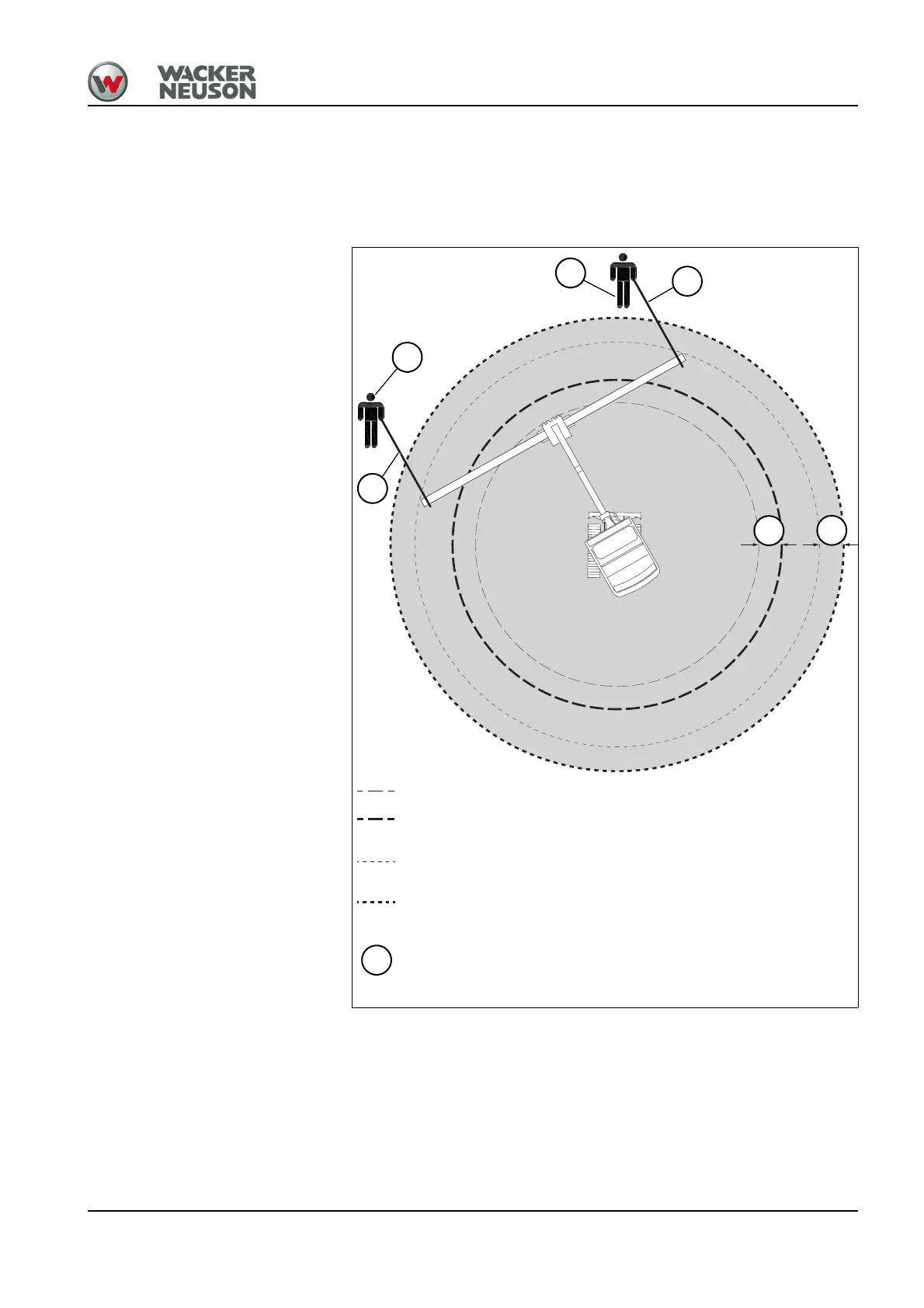 Danger zone with a bucket and a safety distance of 1.5 m (59 in)