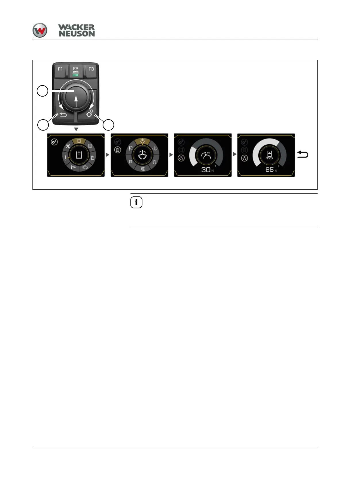 Example for AUX I. The operation for AUX II, AUX III and the dozer blade