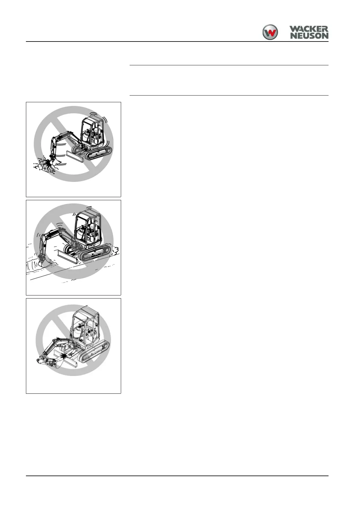 Do not use the swivel force of the upper carriage to tear down walls or to