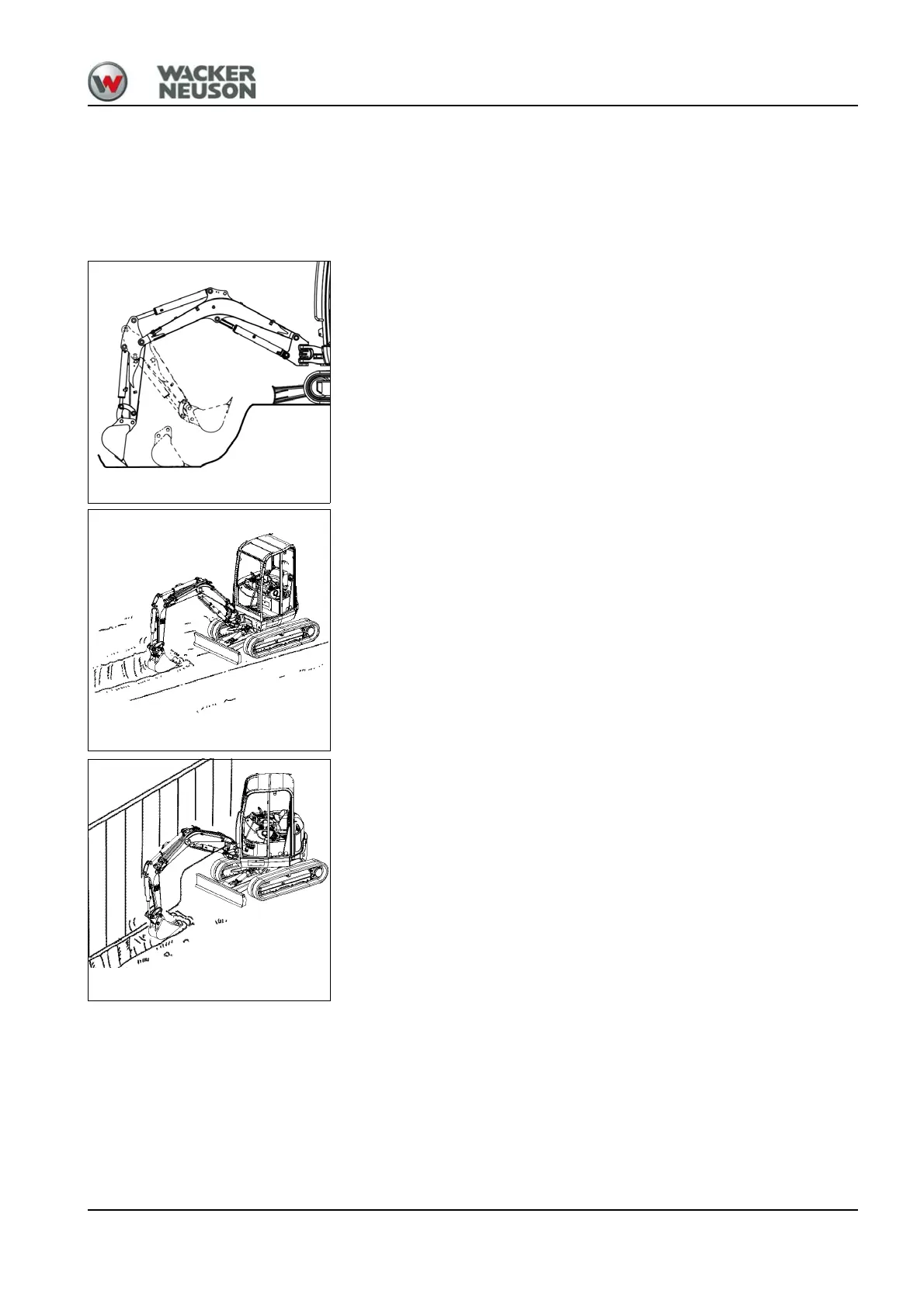 For excavating laterally in tight spaces, turn the upper carriage and swivel