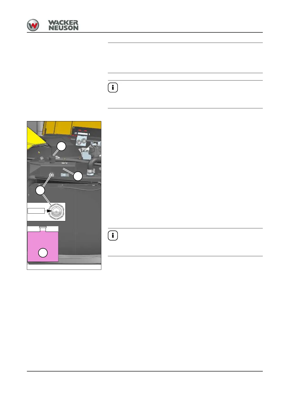 2. Carefully unscrew the filler cap Aand release the pressure.