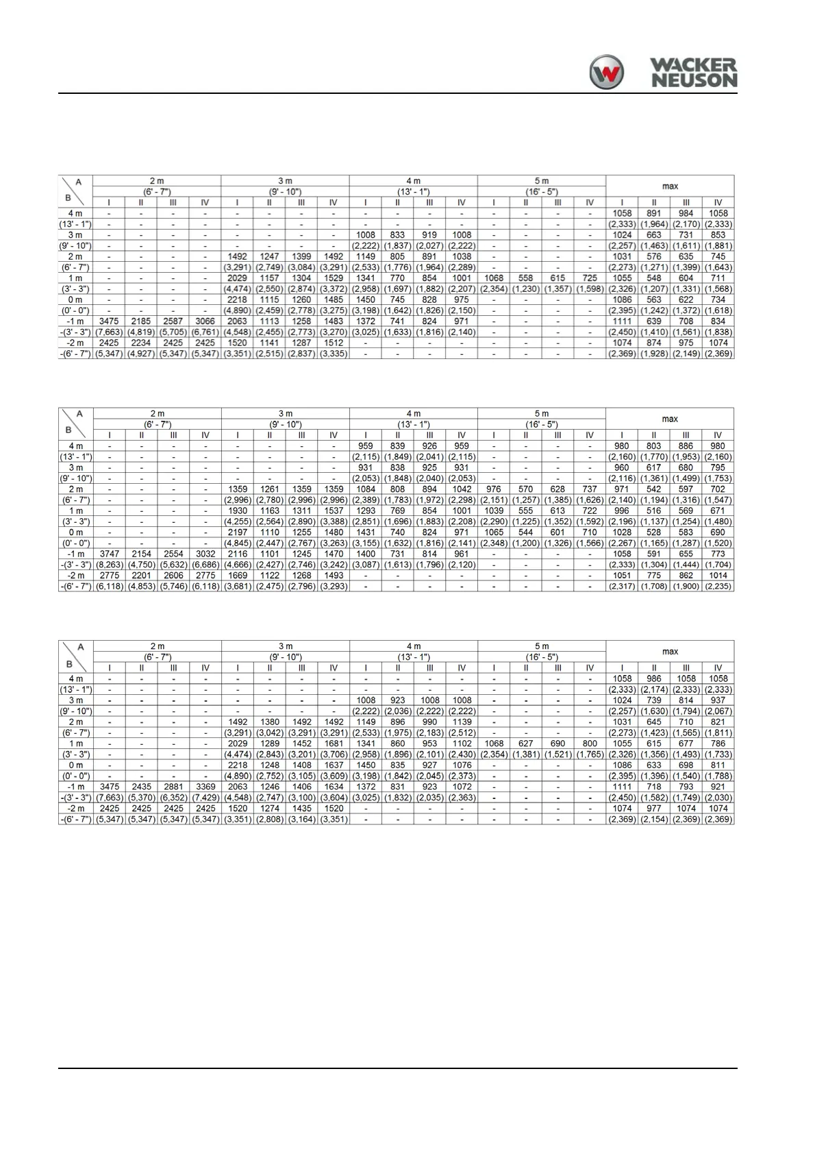Lift capacity tables EZ50