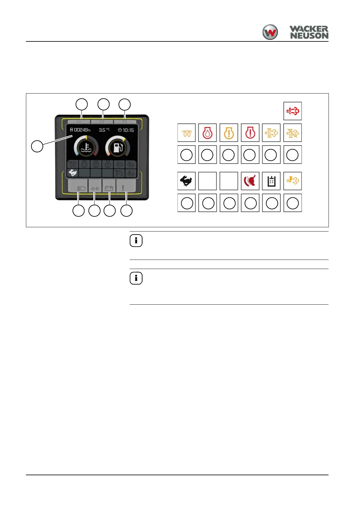 The display element informs the operator about operating states, required