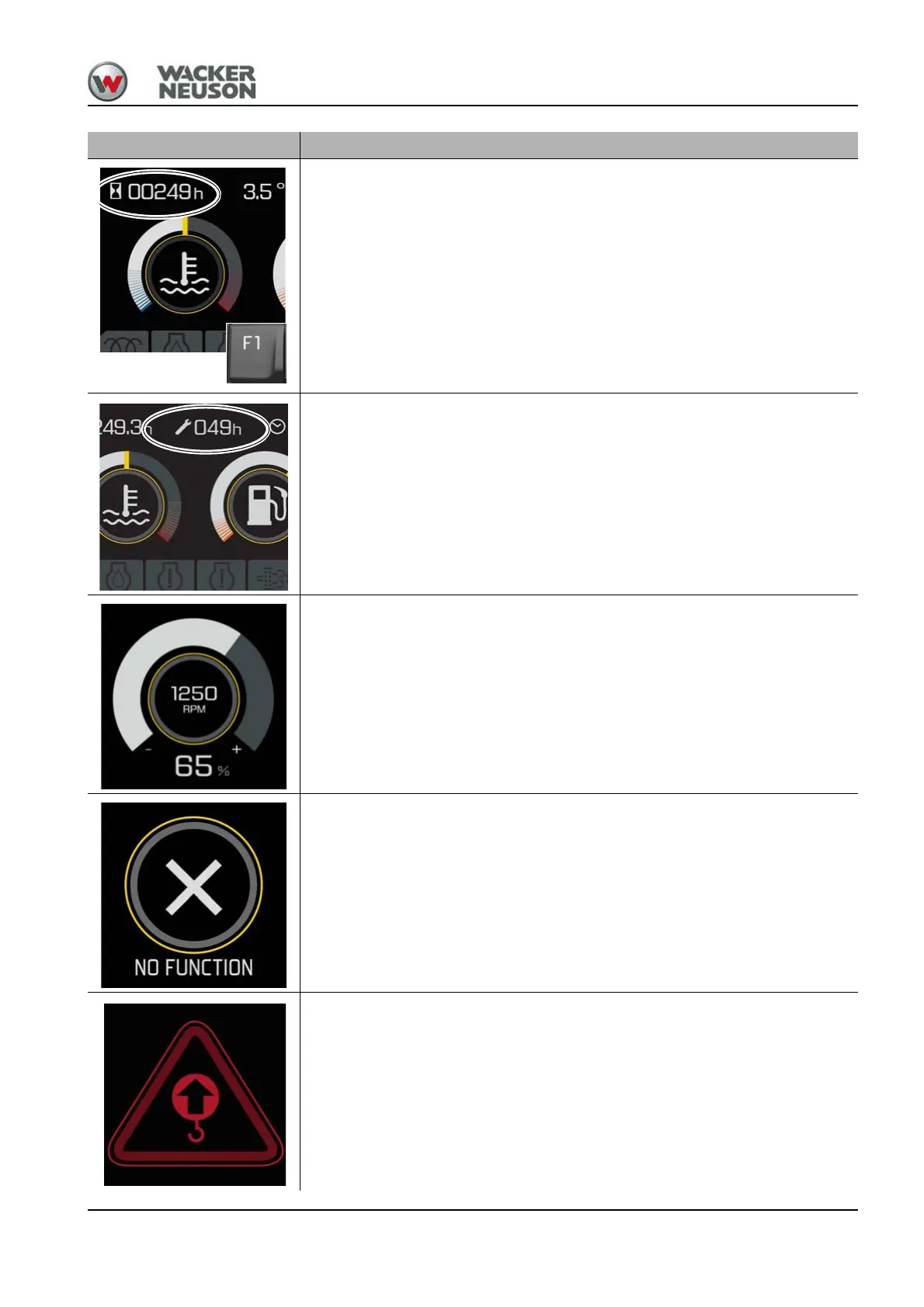 When the safe load indicator is switched on, the symbol is illuminated and the