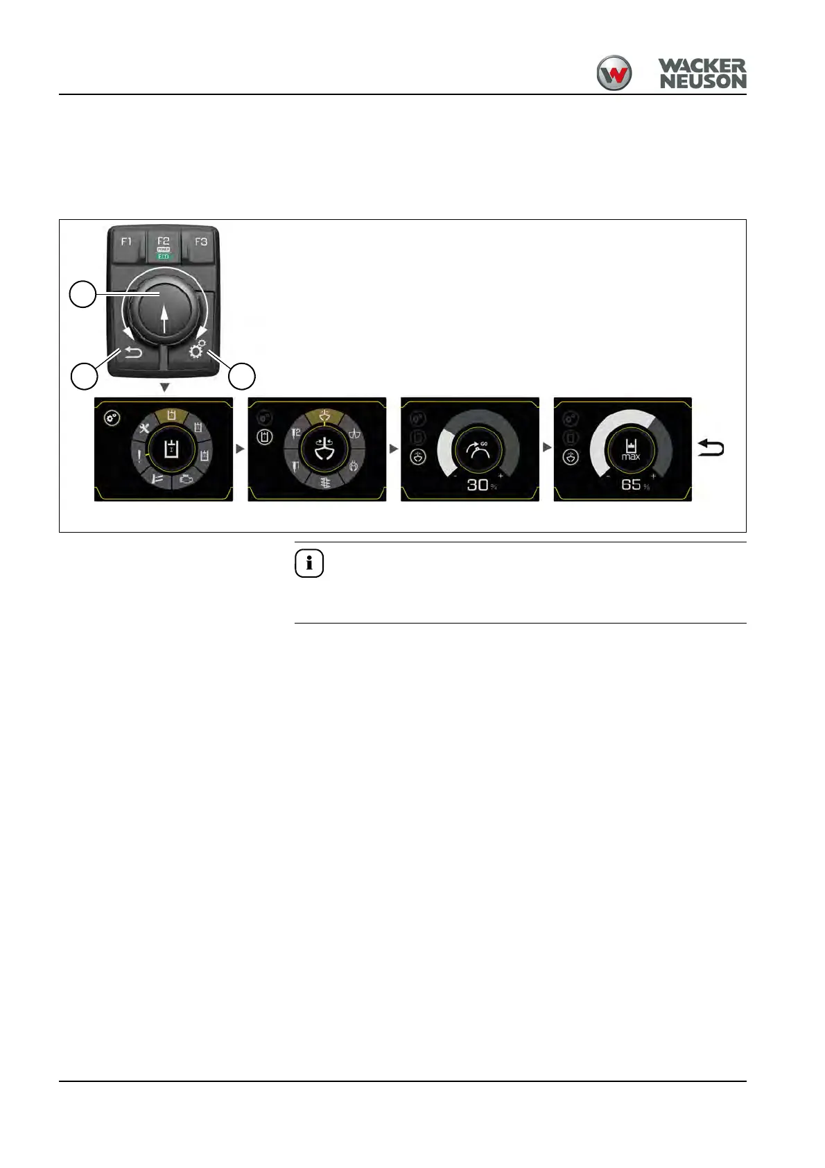 Example for AUX I. The operation for AUX II, AUX III and the dozer blade