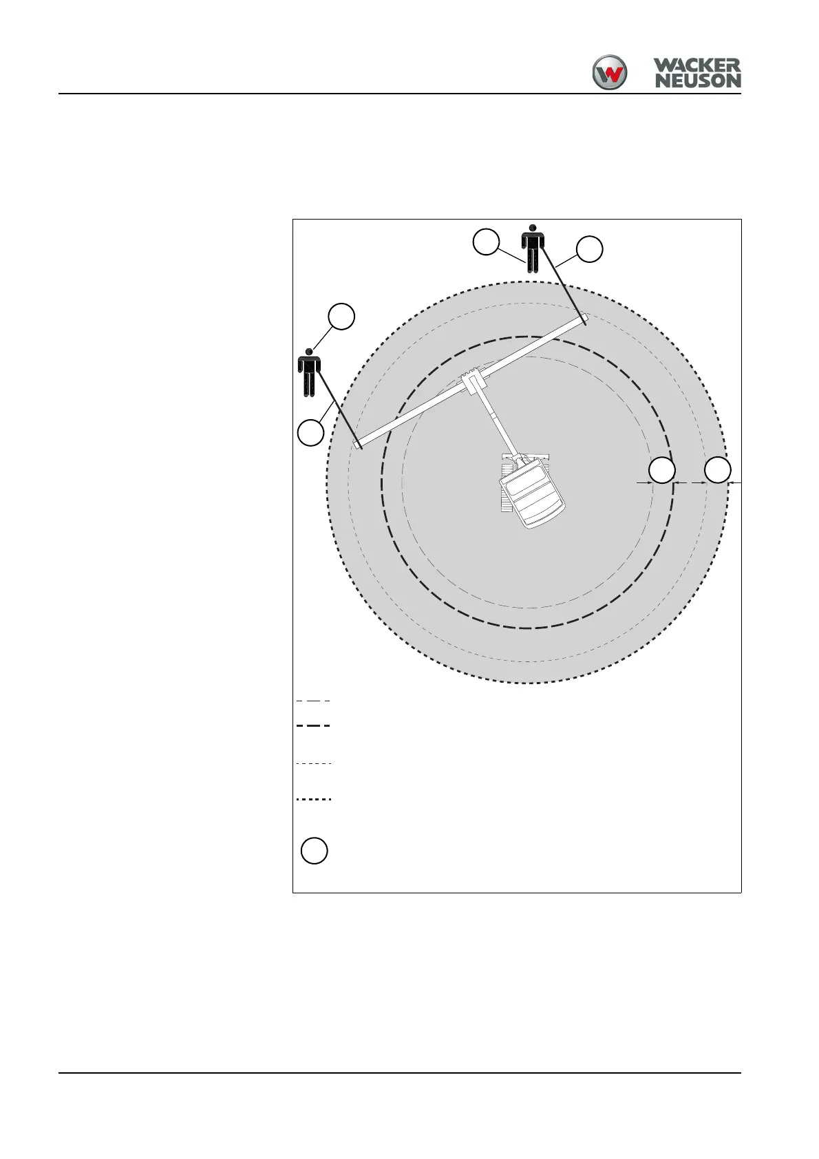 Danger zone with a bucket and a safety distance of 1.5 m (59 in)